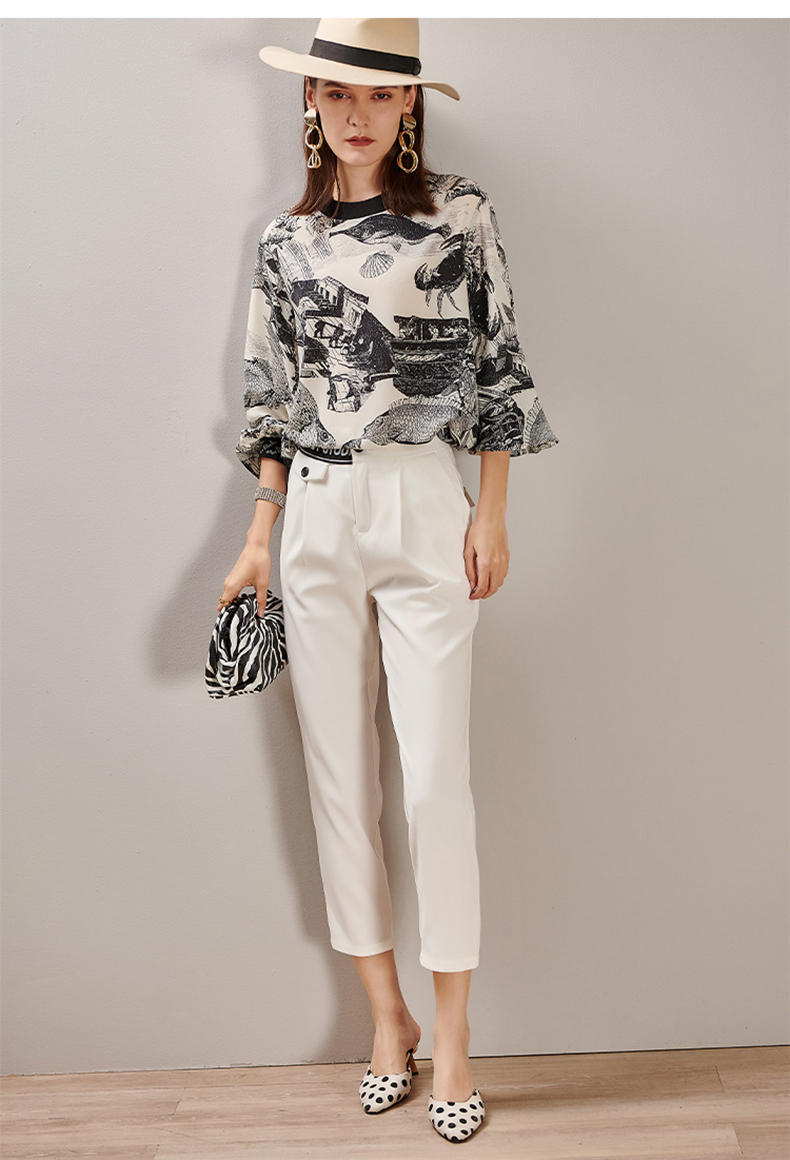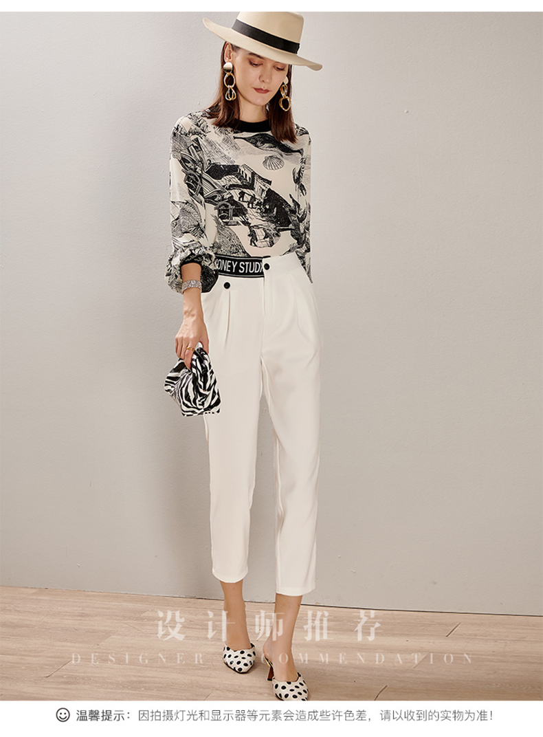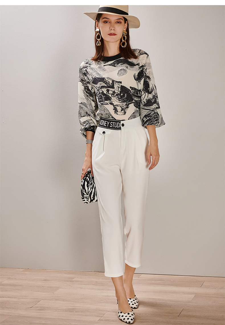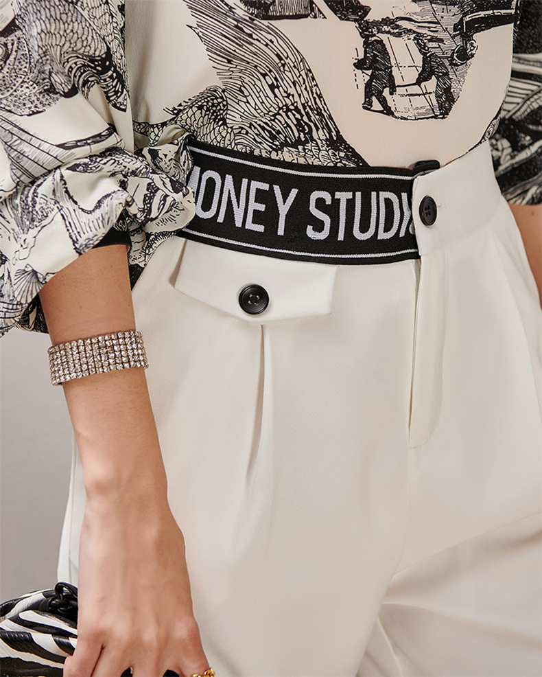 芳外2025春季新款时尚百搭白色哈伦裤高腰拼接弹力薄款休闲裤0667