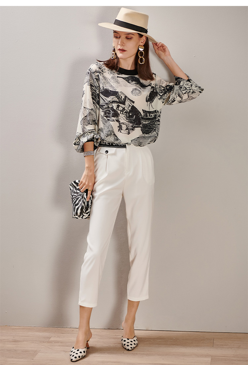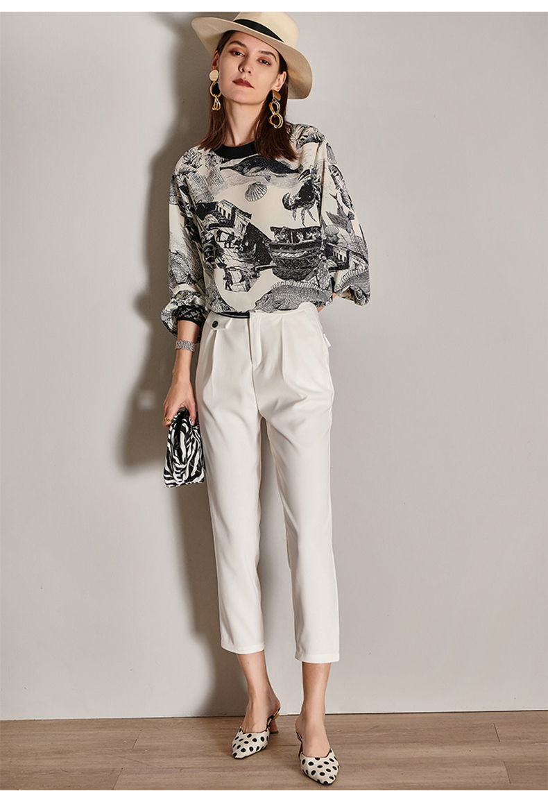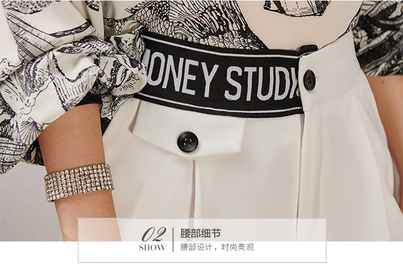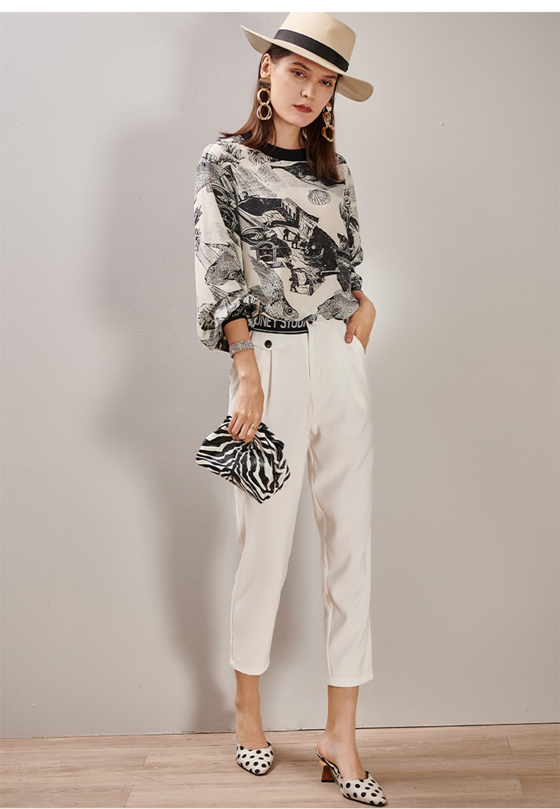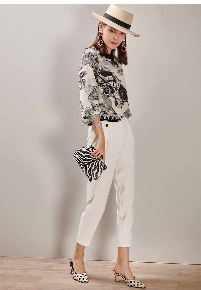 芳外2025春季新款时尚百搭白色哈伦裤高腰拼接弹力薄款休闲裤0667