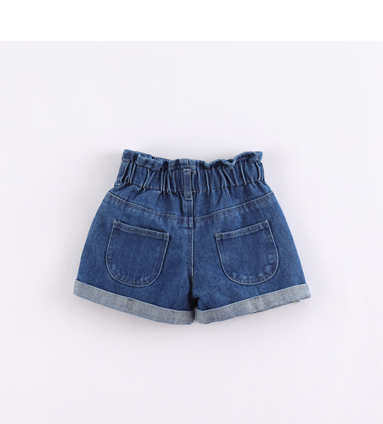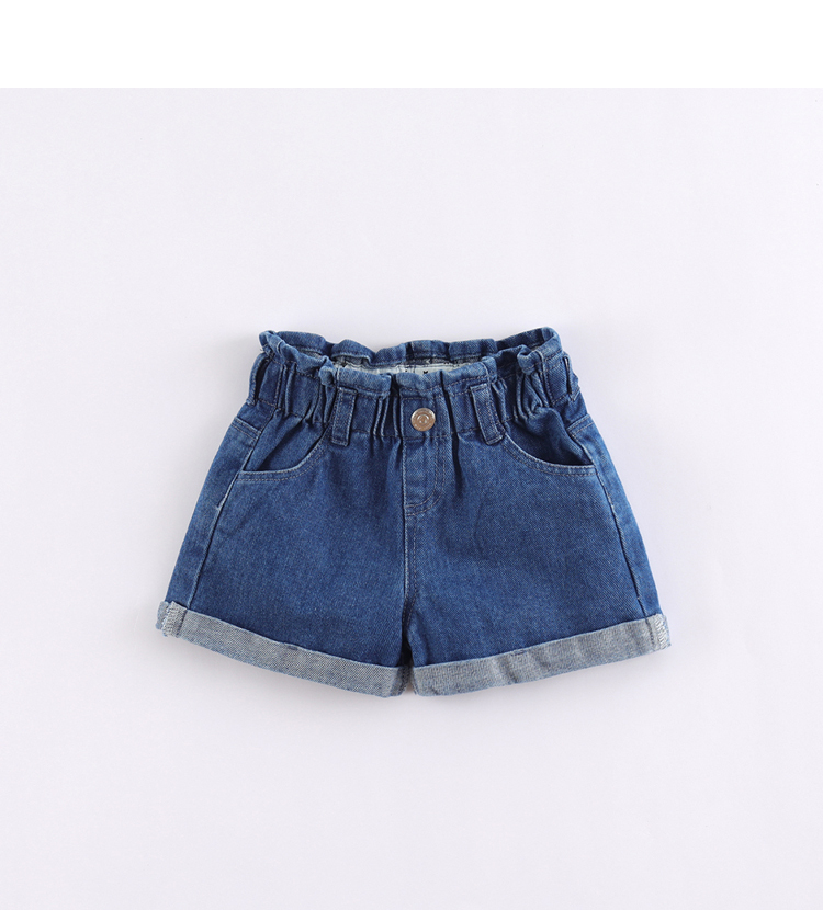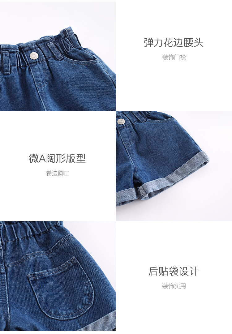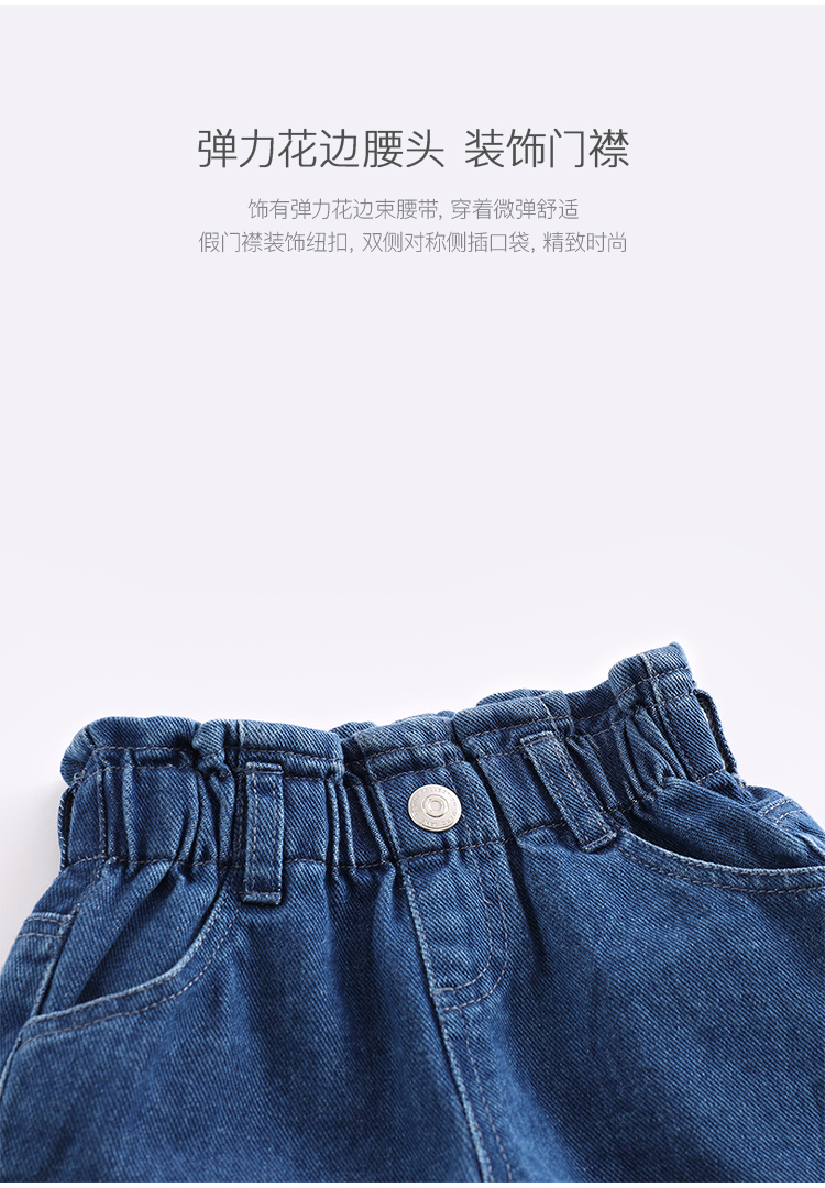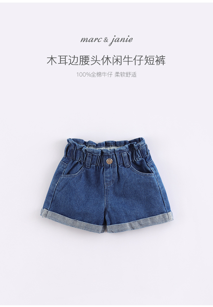马克珍妮夏装女童木耳边腰头牛仔短裤220782