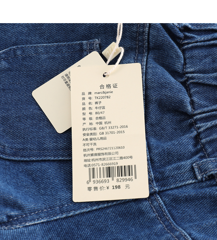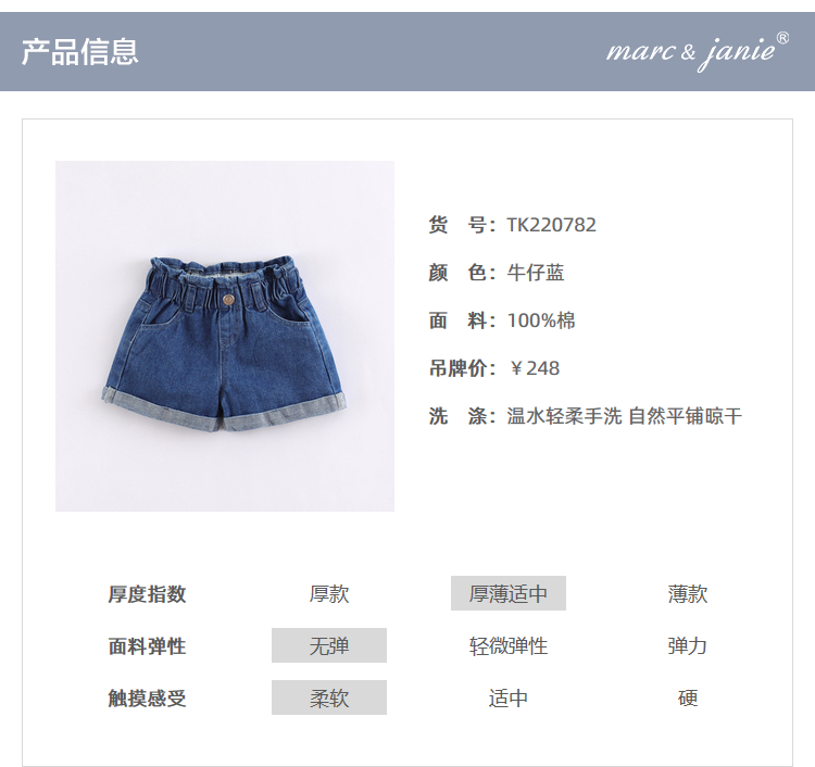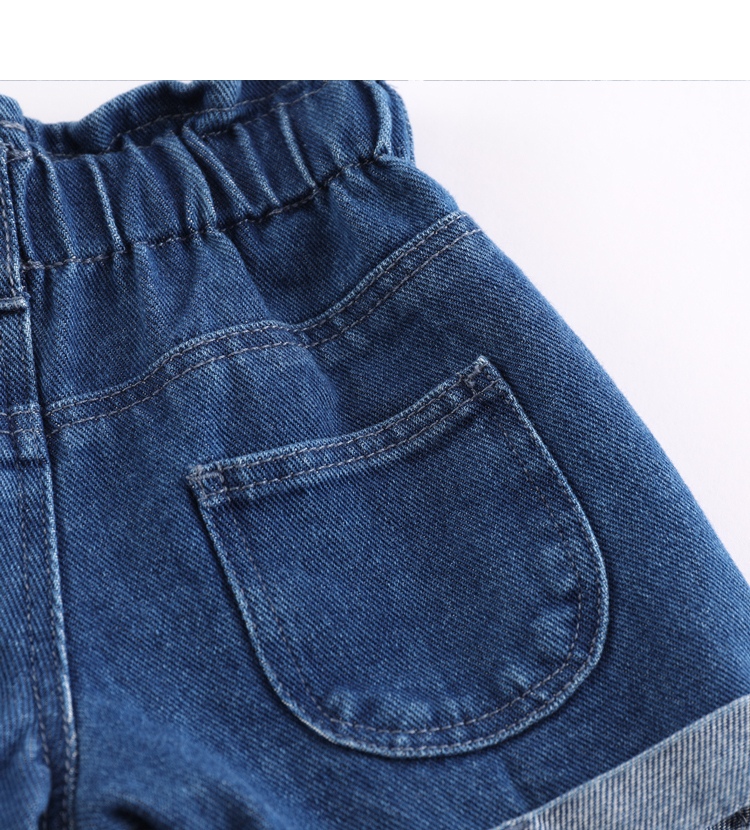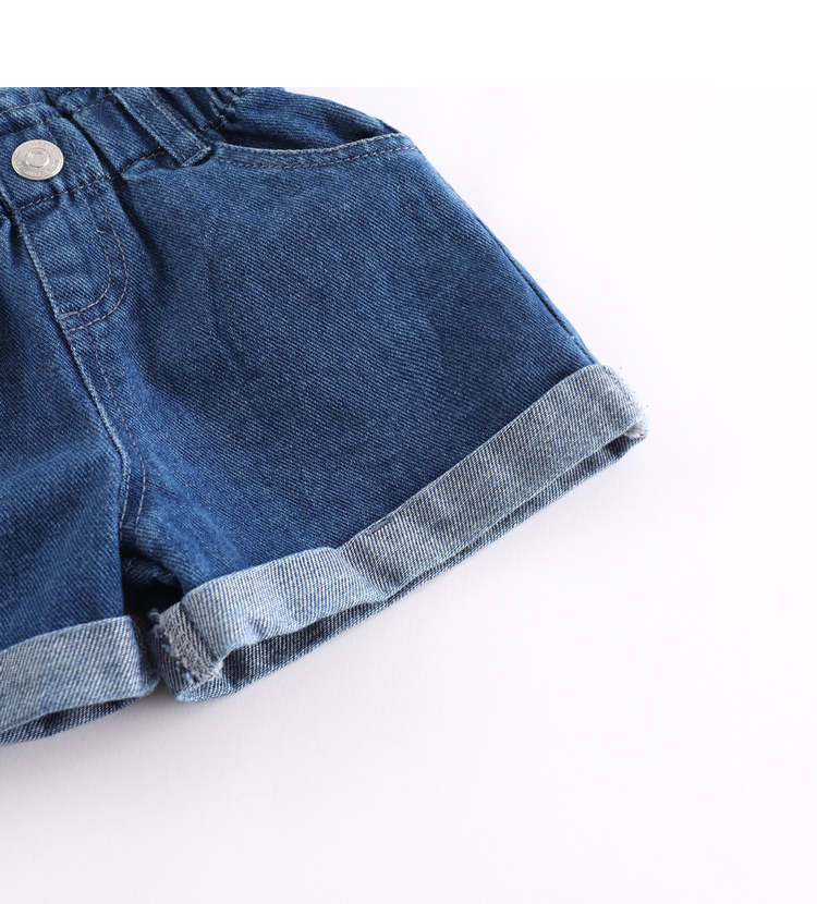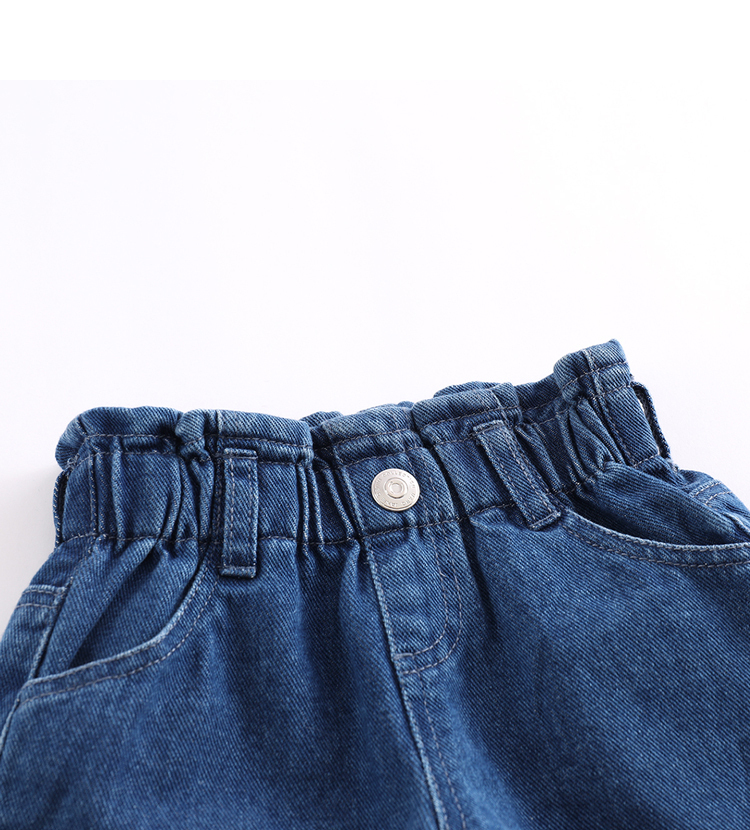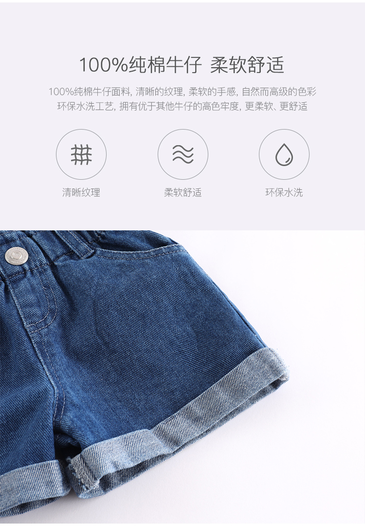 马克珍妮夏装女童木耳边腰头牛仔短裤220782