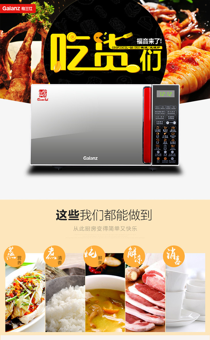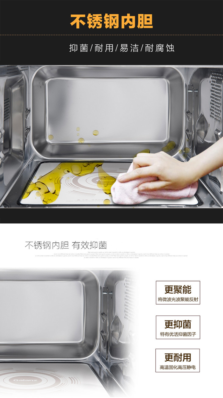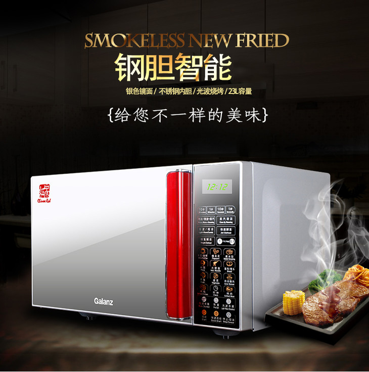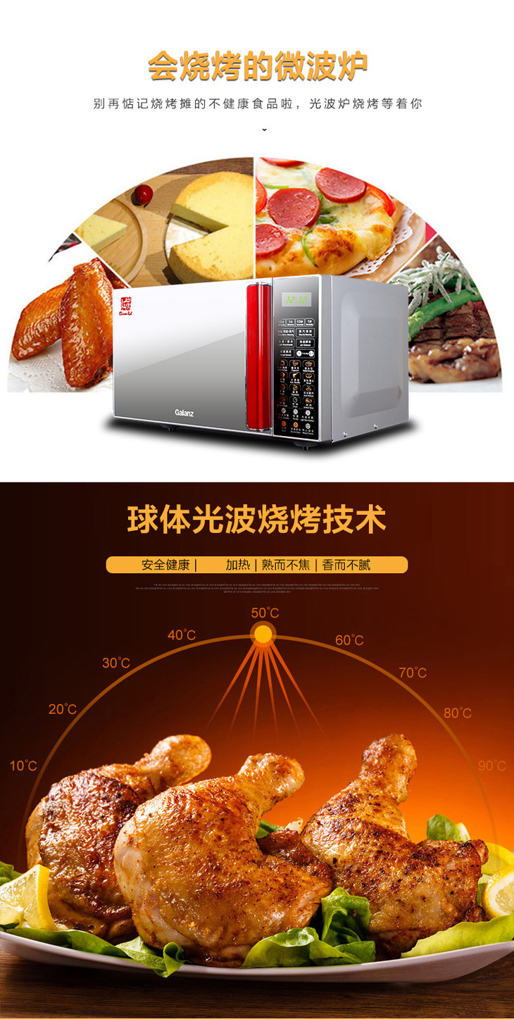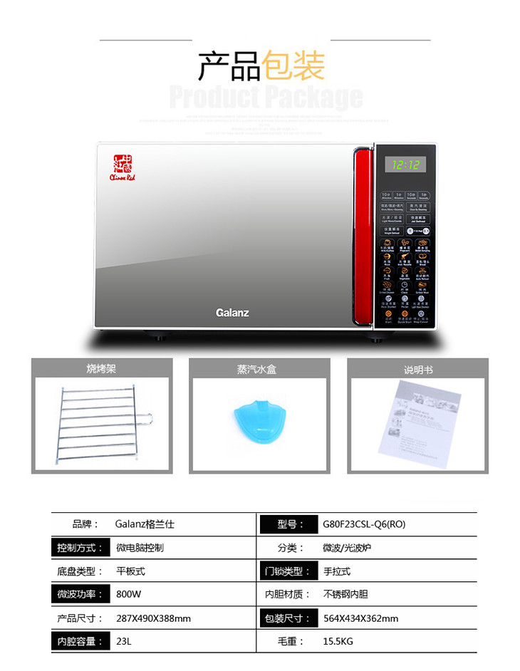 格兰仕(504880)(Galanz)微波炉 G80F23CSL-Q6(R0) 光波烧烤 微电脑式平板 家用智能大容量 不锈钢内胆23L