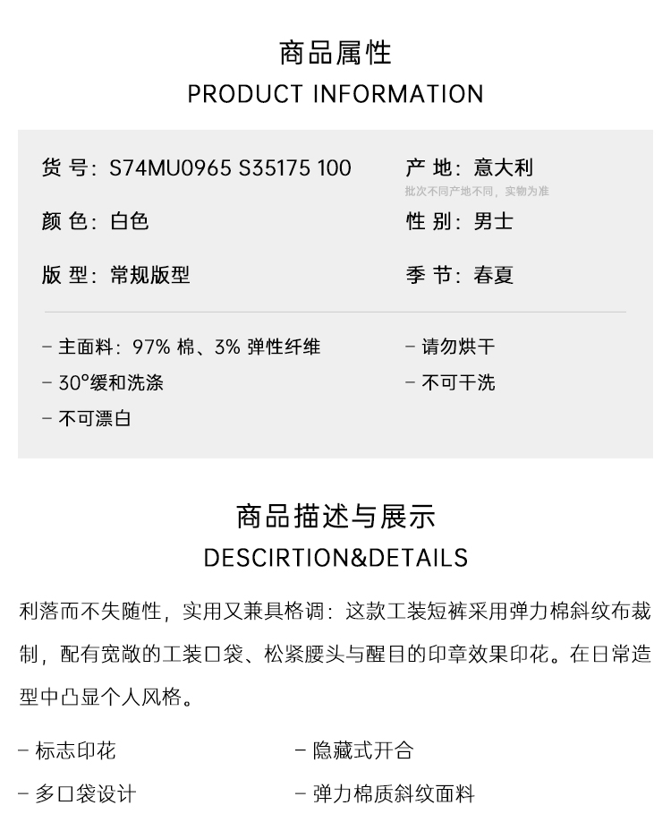 DSQUARED2 男士徽标印花弹力棉质休闲短裤 白色 S74MU0965 S35175 100