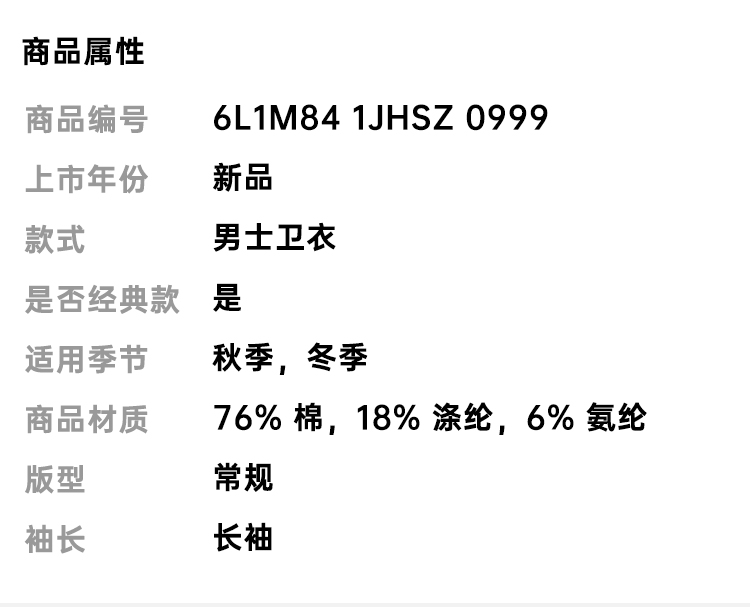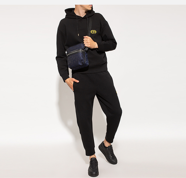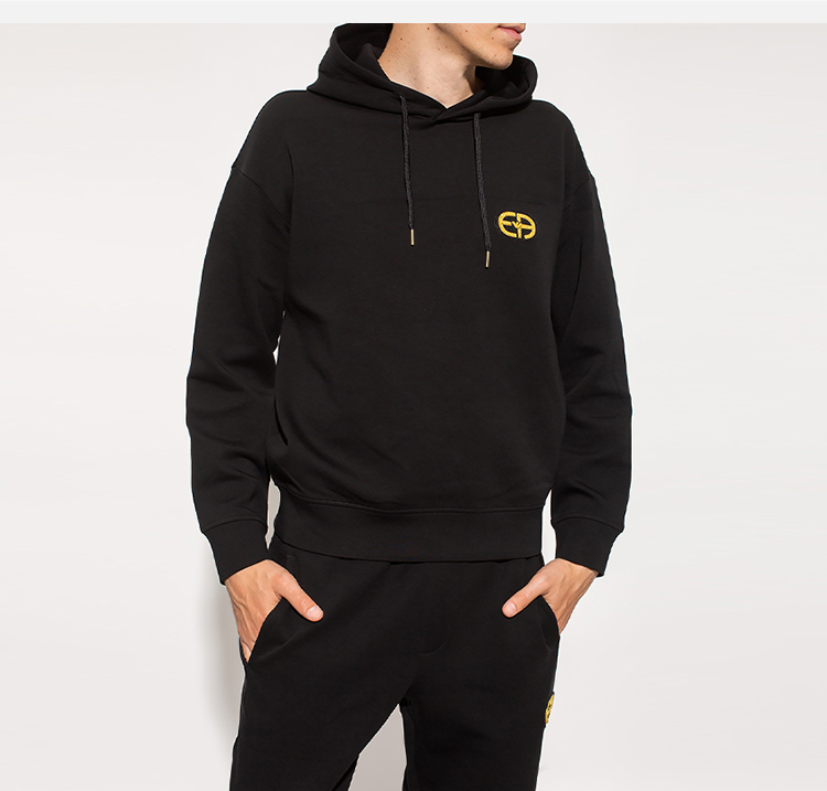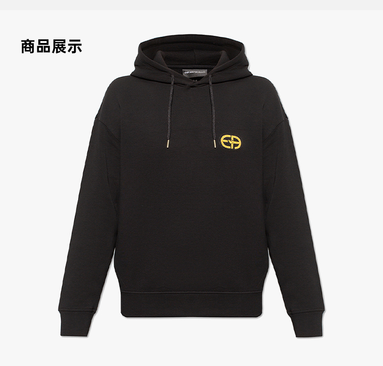 EMPORIO ARMANI 阿玛尼 男士棉质刺绣徽标长袖连帽卫衣 黑色 6L1M84 1JHSZ 0999