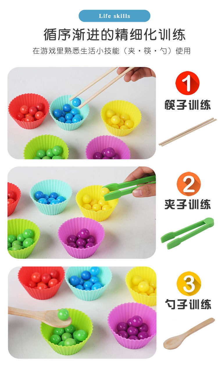 【精细动作夹夹乐 锻炼手眼协调】蒙氏教具 早教夹珠子训练益智玩具 专注力训练感统思维训练数学启蒙