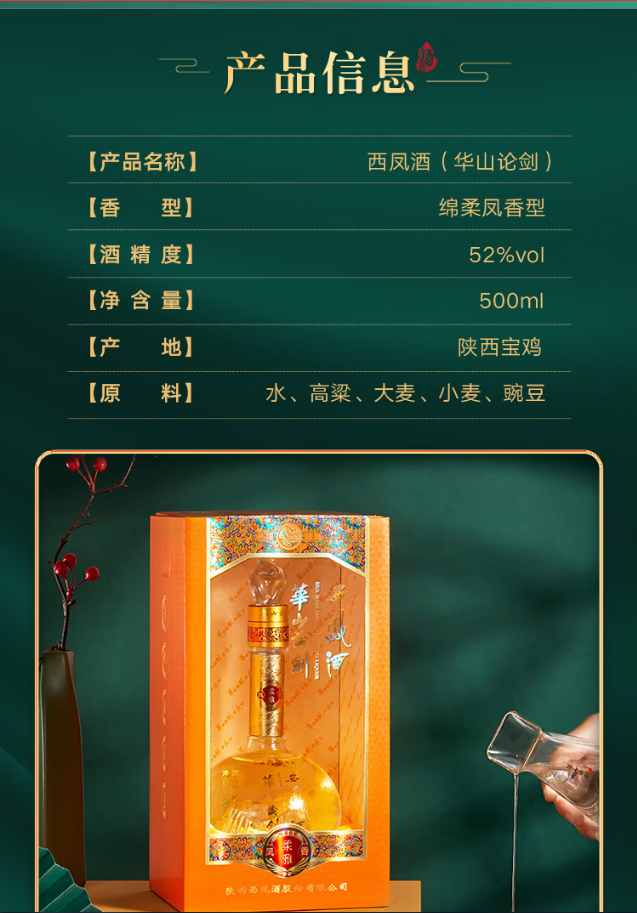 西凤酒 华山论剑(柔雅)橙标52度凤香型白酒500ml*1瓶/6瓶整箱