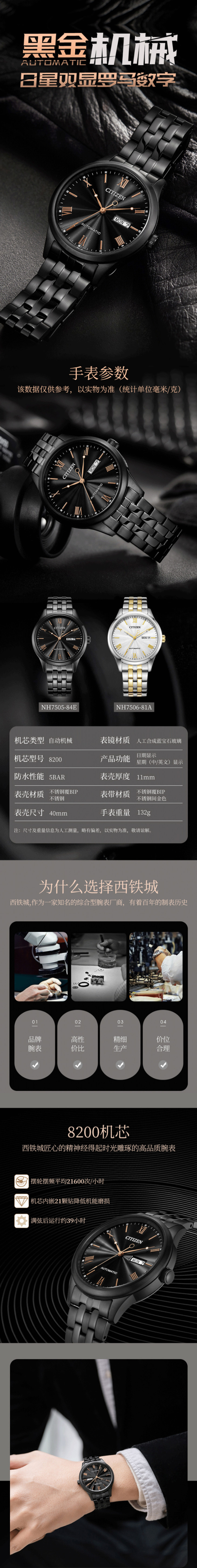 西铁城日本官方正品复古夜光钢带机械男表NH7505-84E