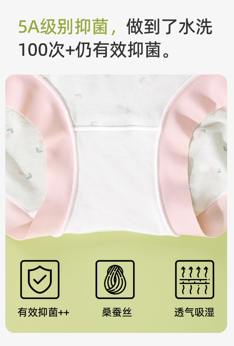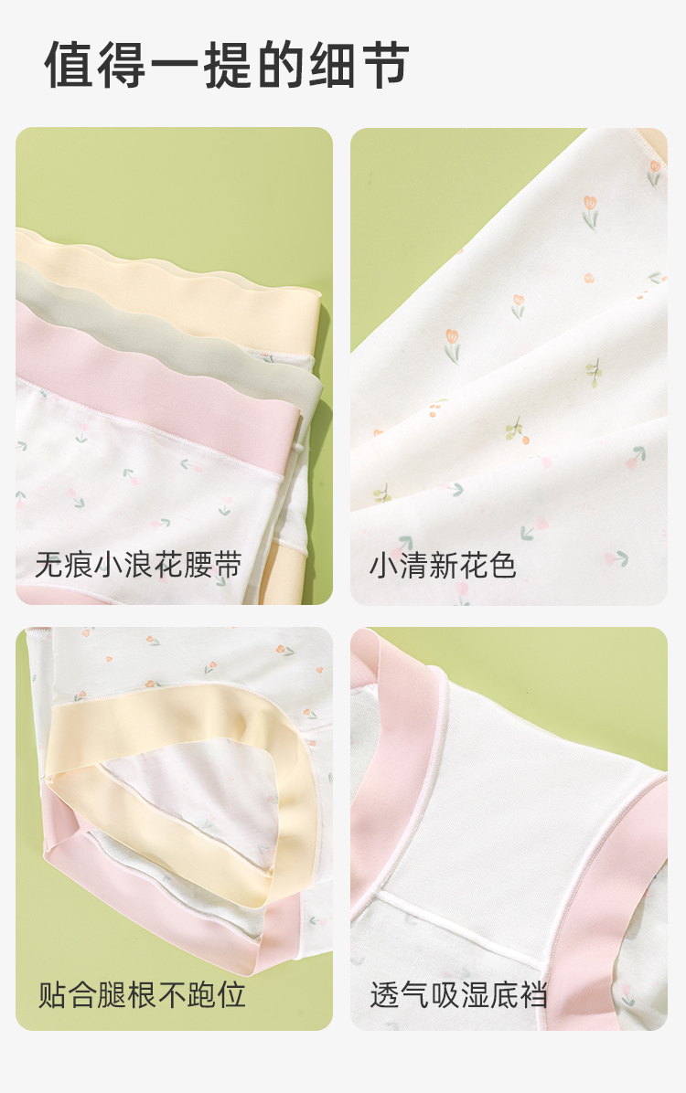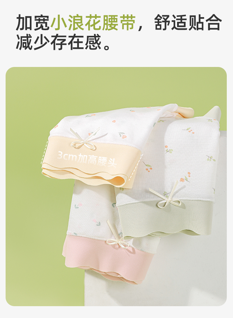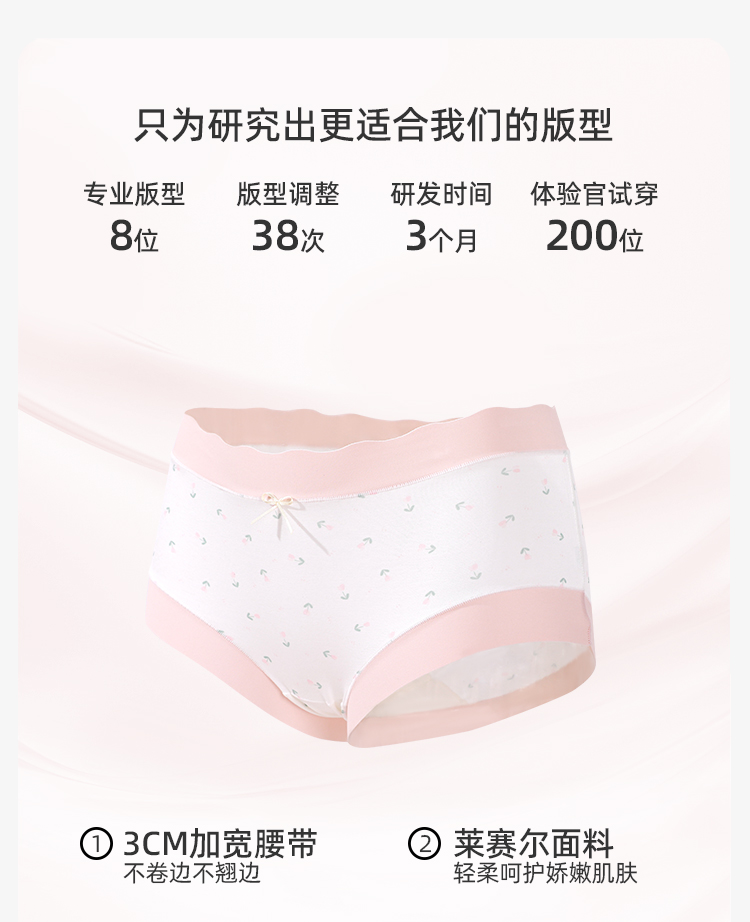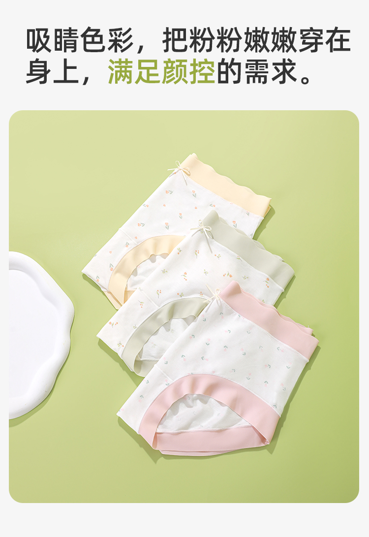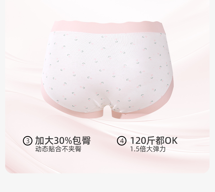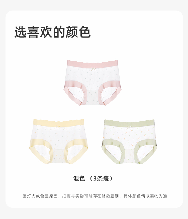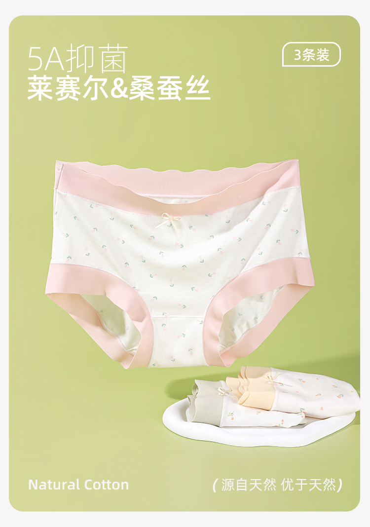 【3条装】熳洁儿 莫代尔内裤5A级抑菌桑蚕丝底档清新撞色小碎花无痕24762105