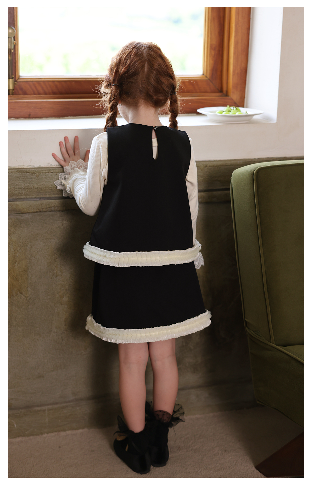 littletime女童套装2025秋新款儿童洋气cleanfit少女黑色背心半裙