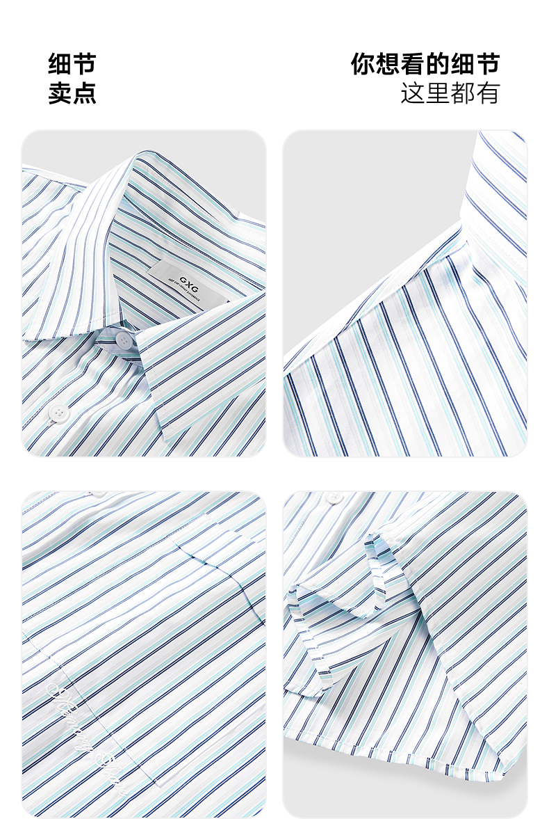 GXG男装 条纹衬衫休闲通勤短袖衬衣25夏热卖G25X232013
