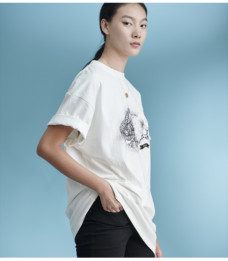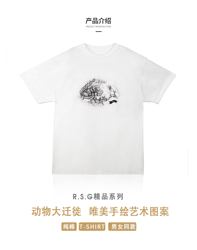 RSG郭培成衣品牌动物大迁徙手绘印花T恤oversize情侣短袖女夏