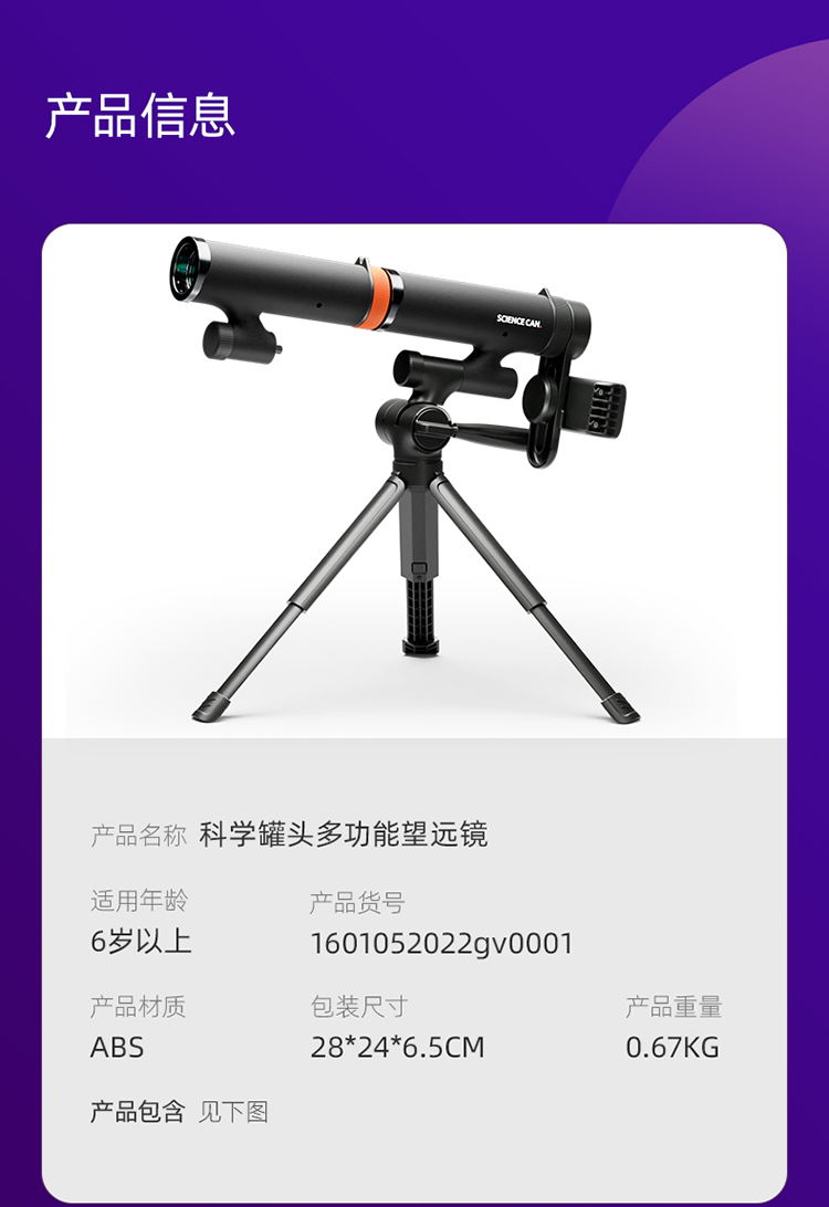 科学罐头天文多功能望远镜儿童益智玩具男孩女孩专业观星高清