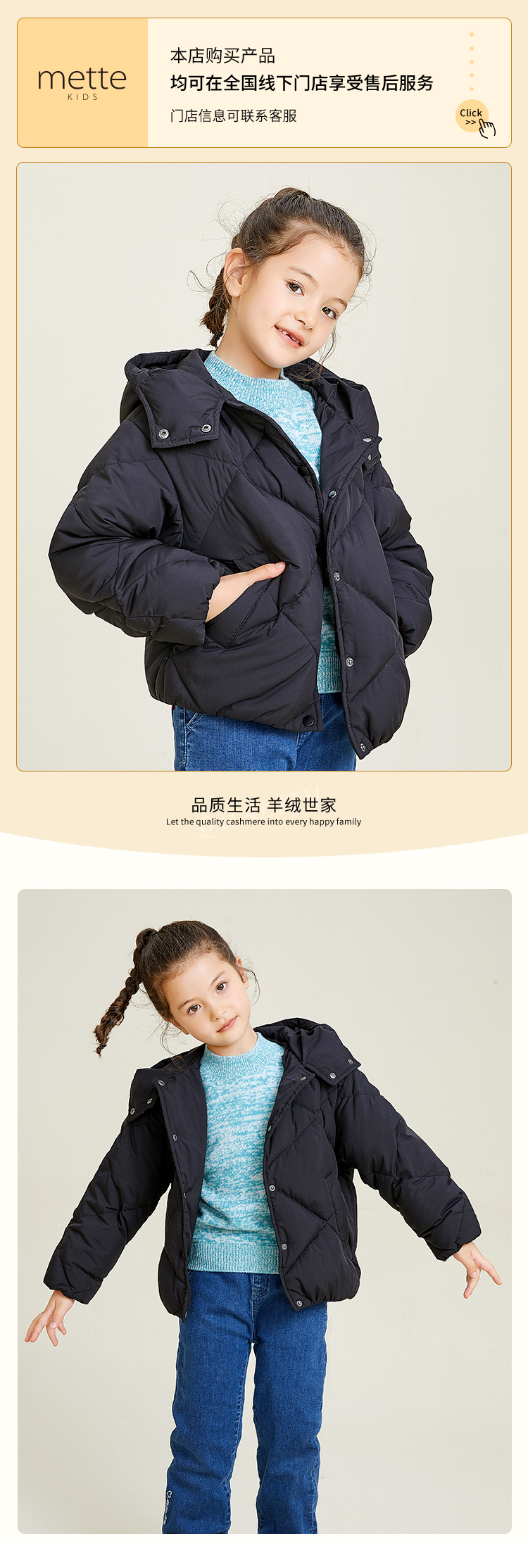 METTE童装90白鹅绒羽绒服2020秋冬新品中大童女宝连帽保暖外套