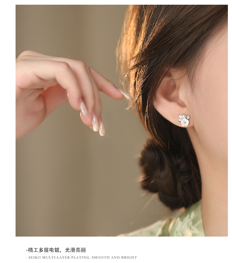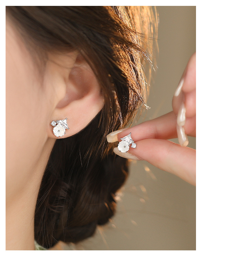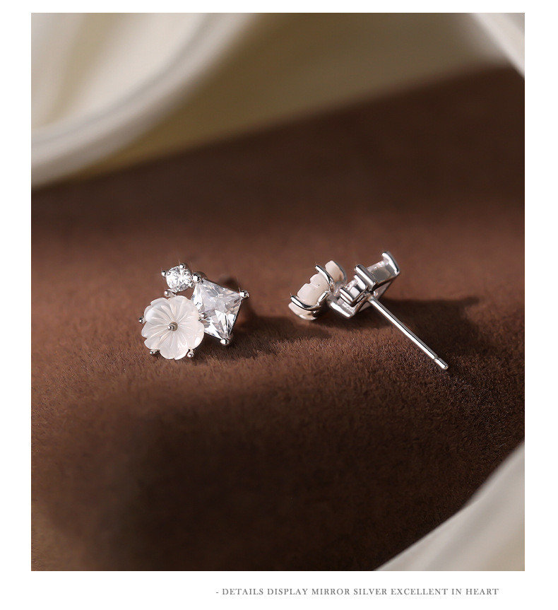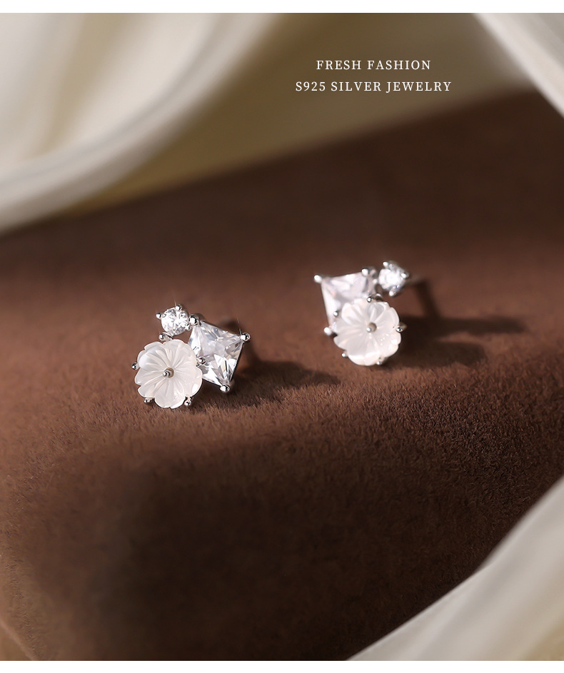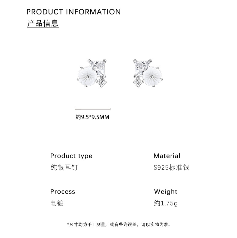 【方糖山茶】S925纯银白贝山茶花耳钉【YXS-E5519】