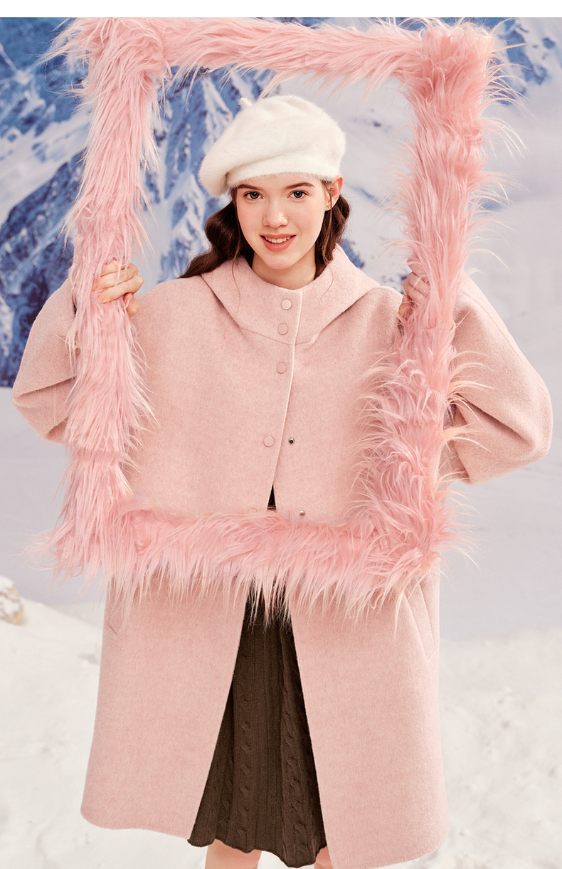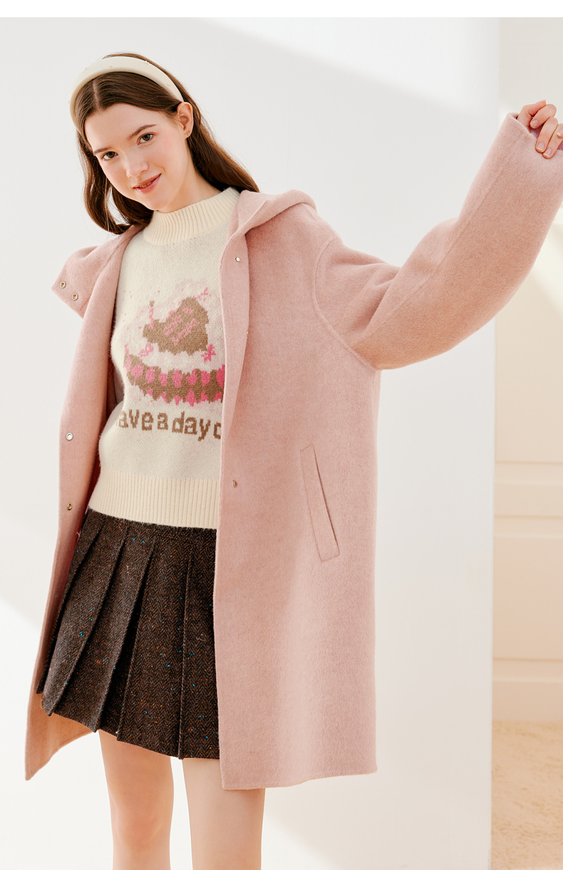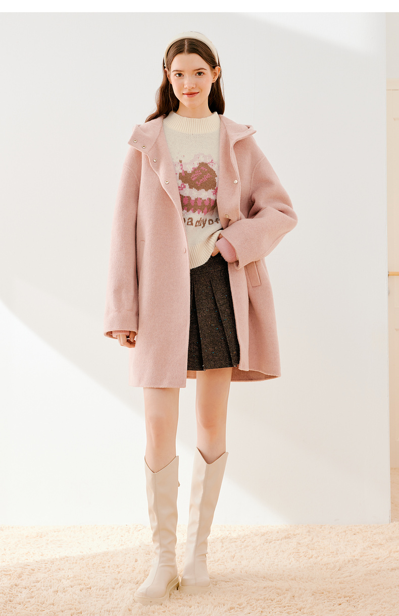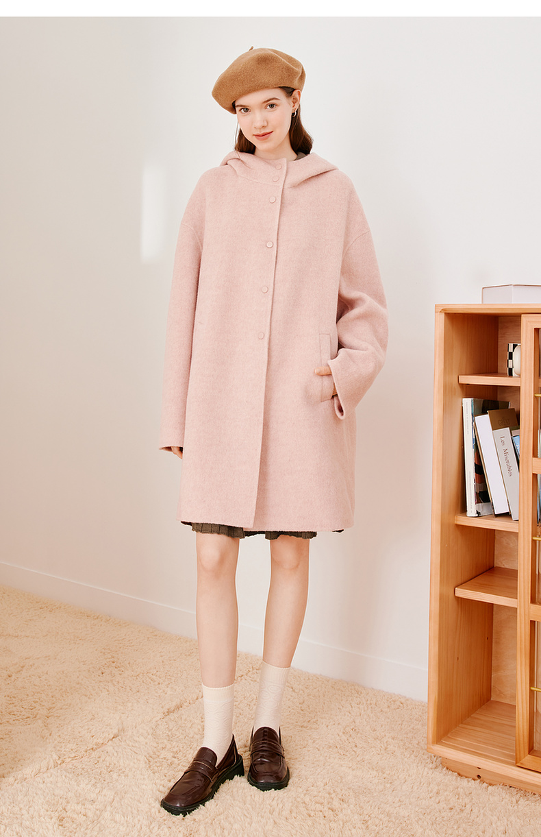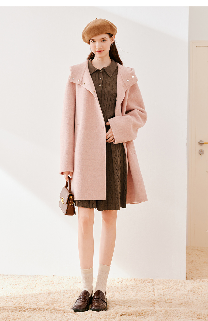 【严选】诗凡黎冬连帽翻领设计毛呢大衣SEB170201