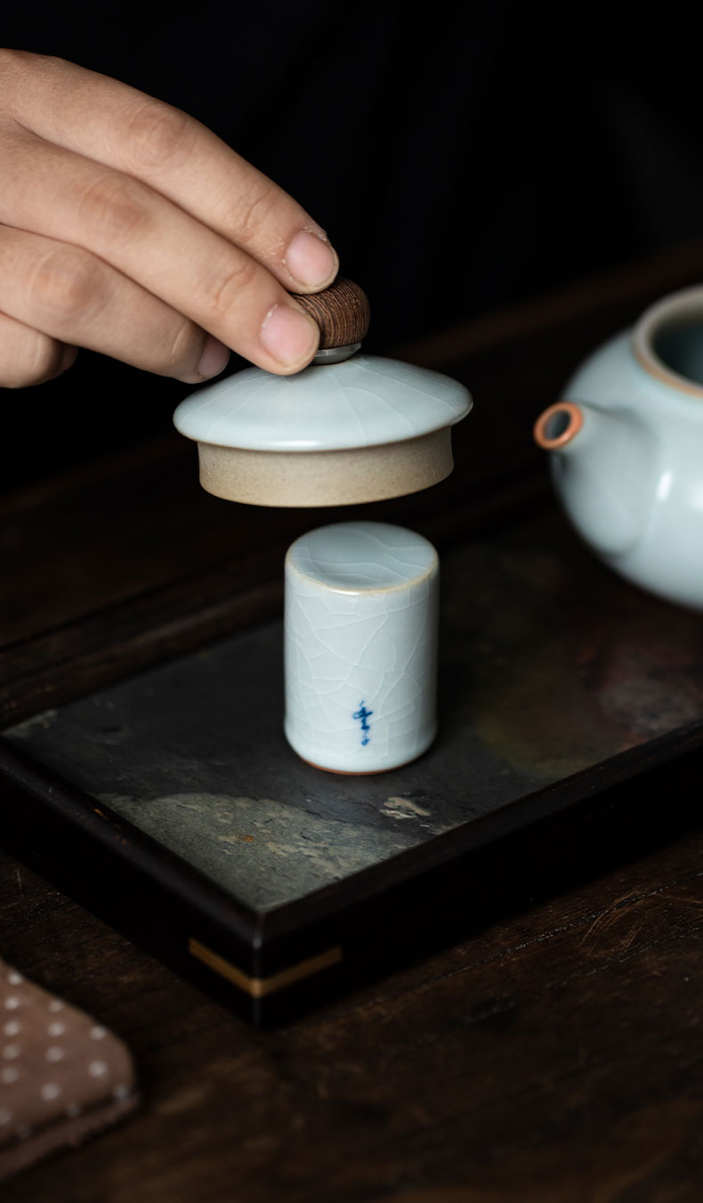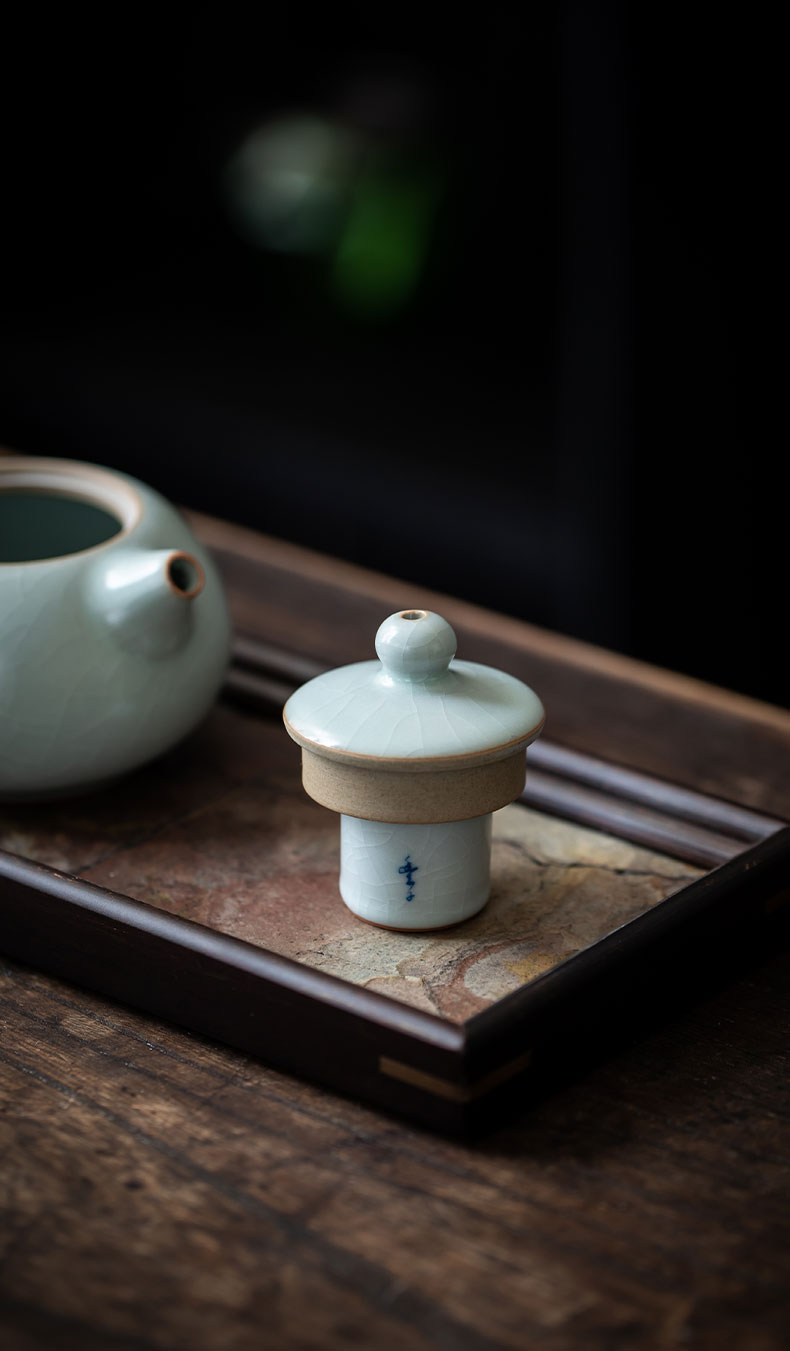 丰子汝窑丰子柱形盖置【方圆盖置】盖托陶瓷天青开片可养汝瓷功夫茶道配件