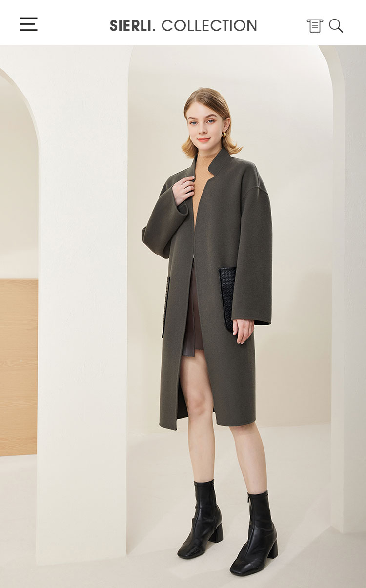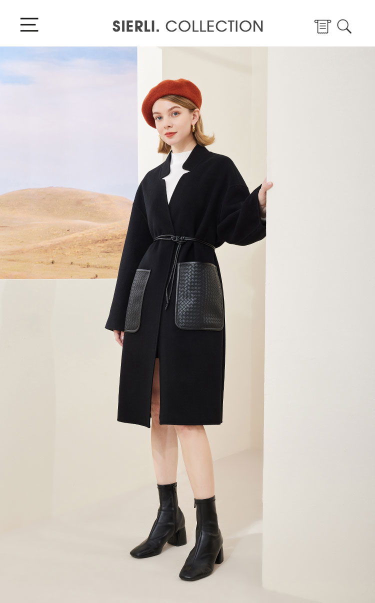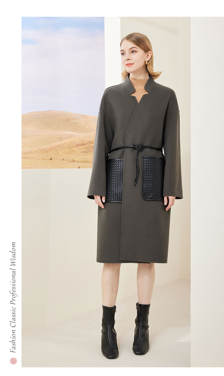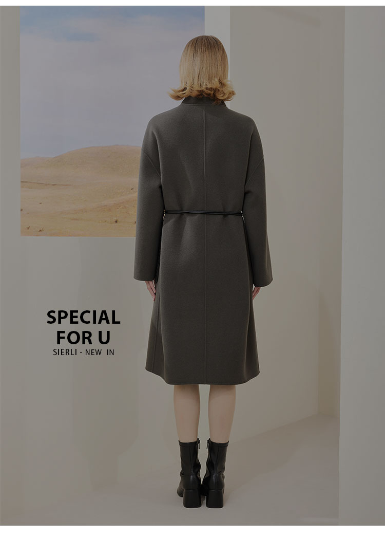 [MD909]斯尔丽瑟俪2022年冬上新系腰带显瘦立领中长款大衣外套