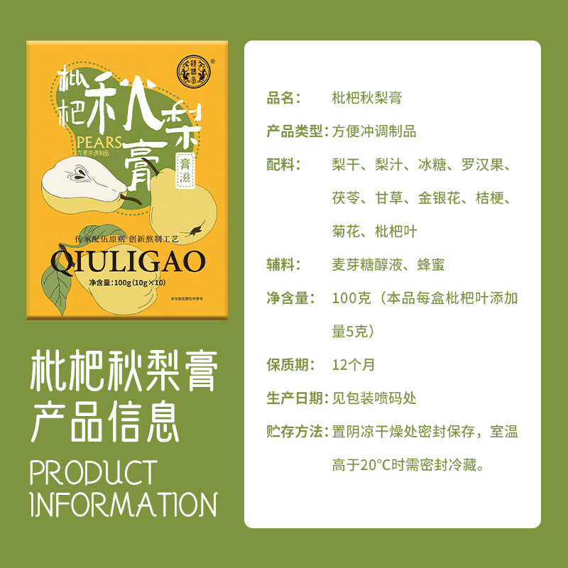 自营(泰利嘉)- 枇杷秋梨膏便携小包袋装秋梨膏100克盒装*3盒