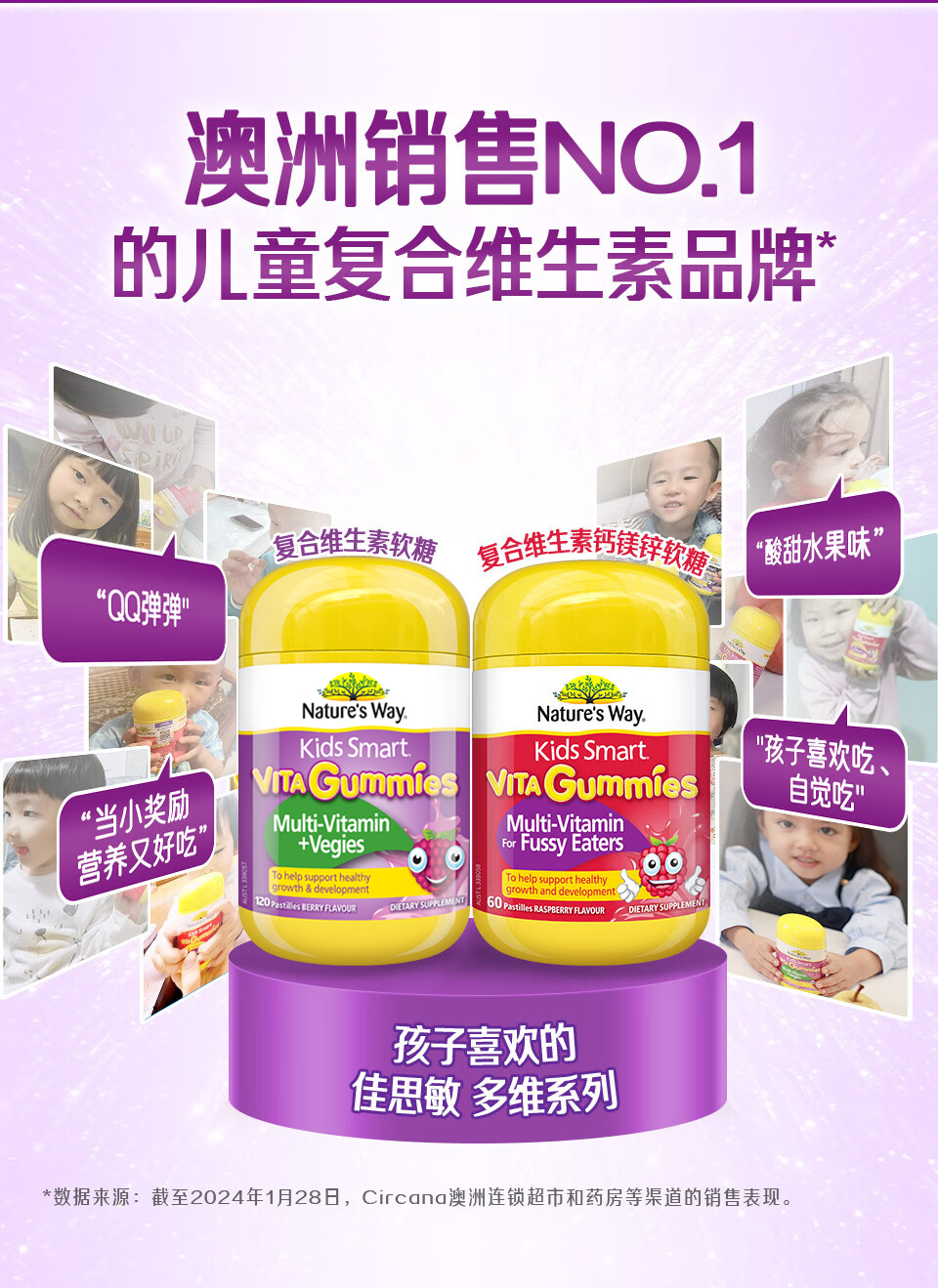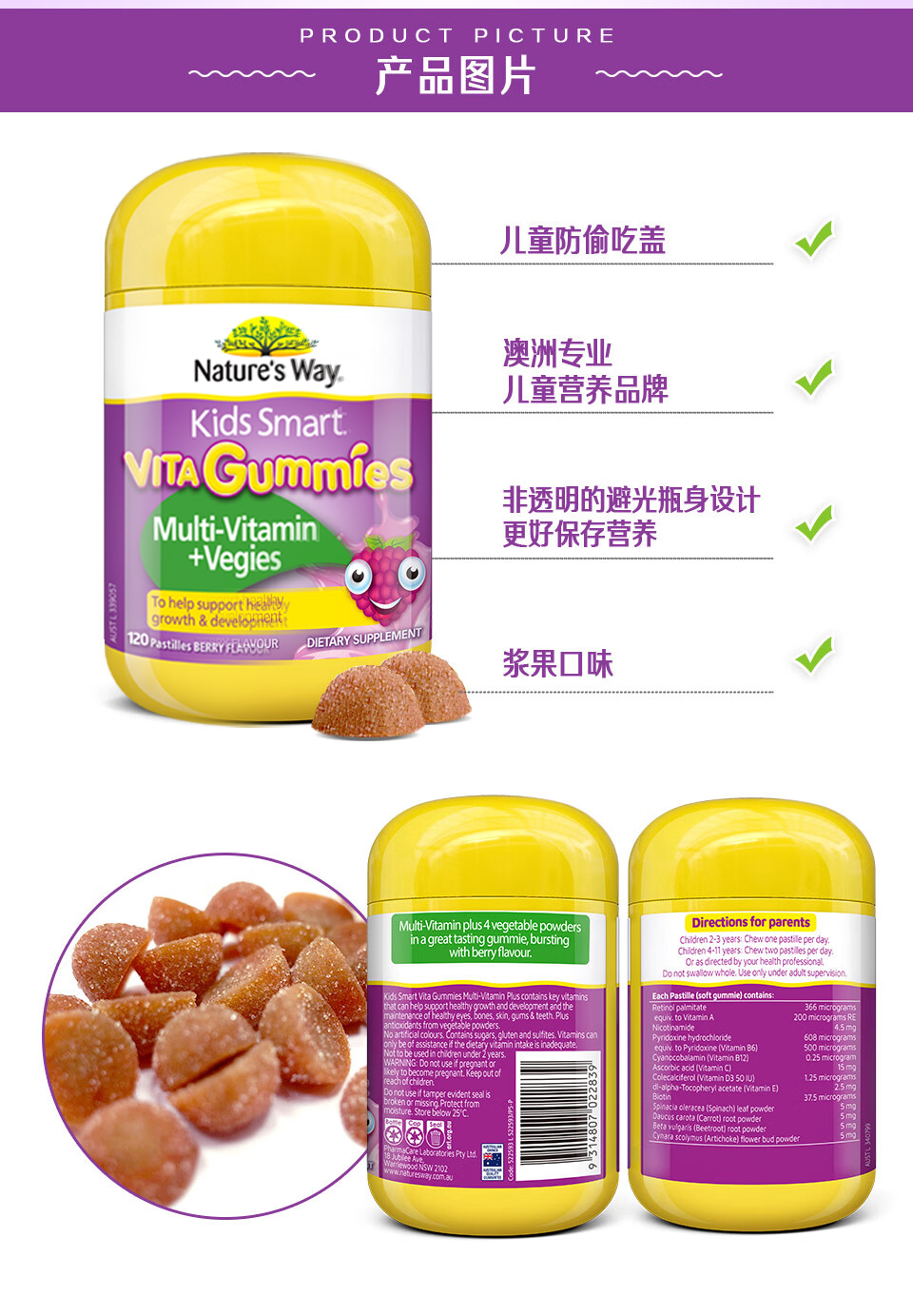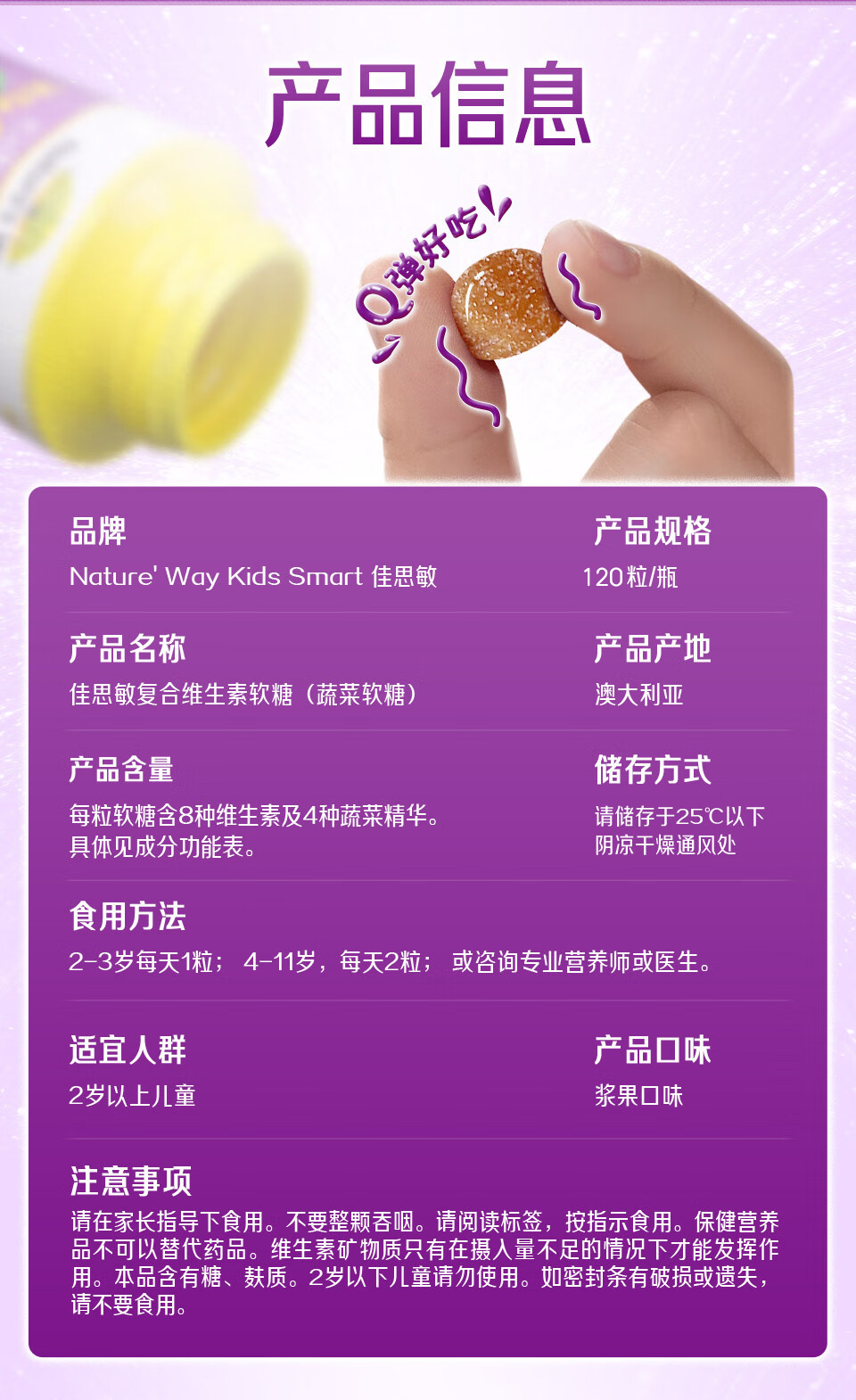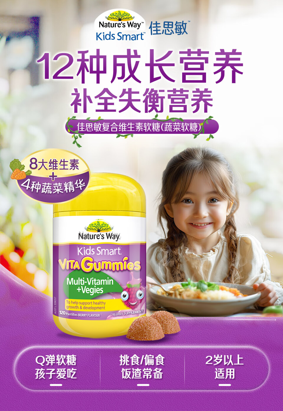 佳思敏(Nature's Way) 维生素c儿童VC 儿童复 合 维生素+蔬菜营养软糖 120粒/瓶