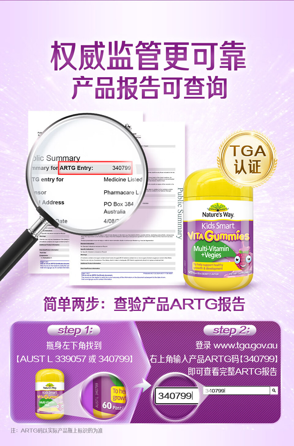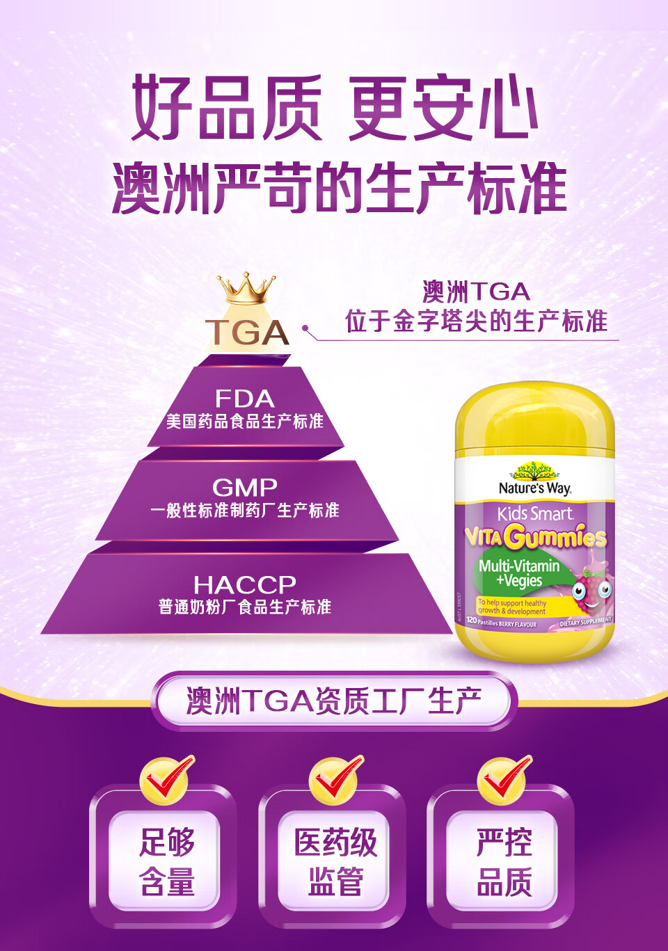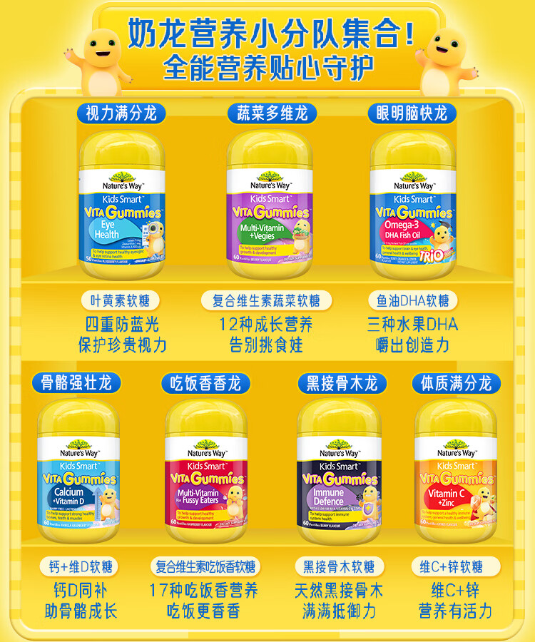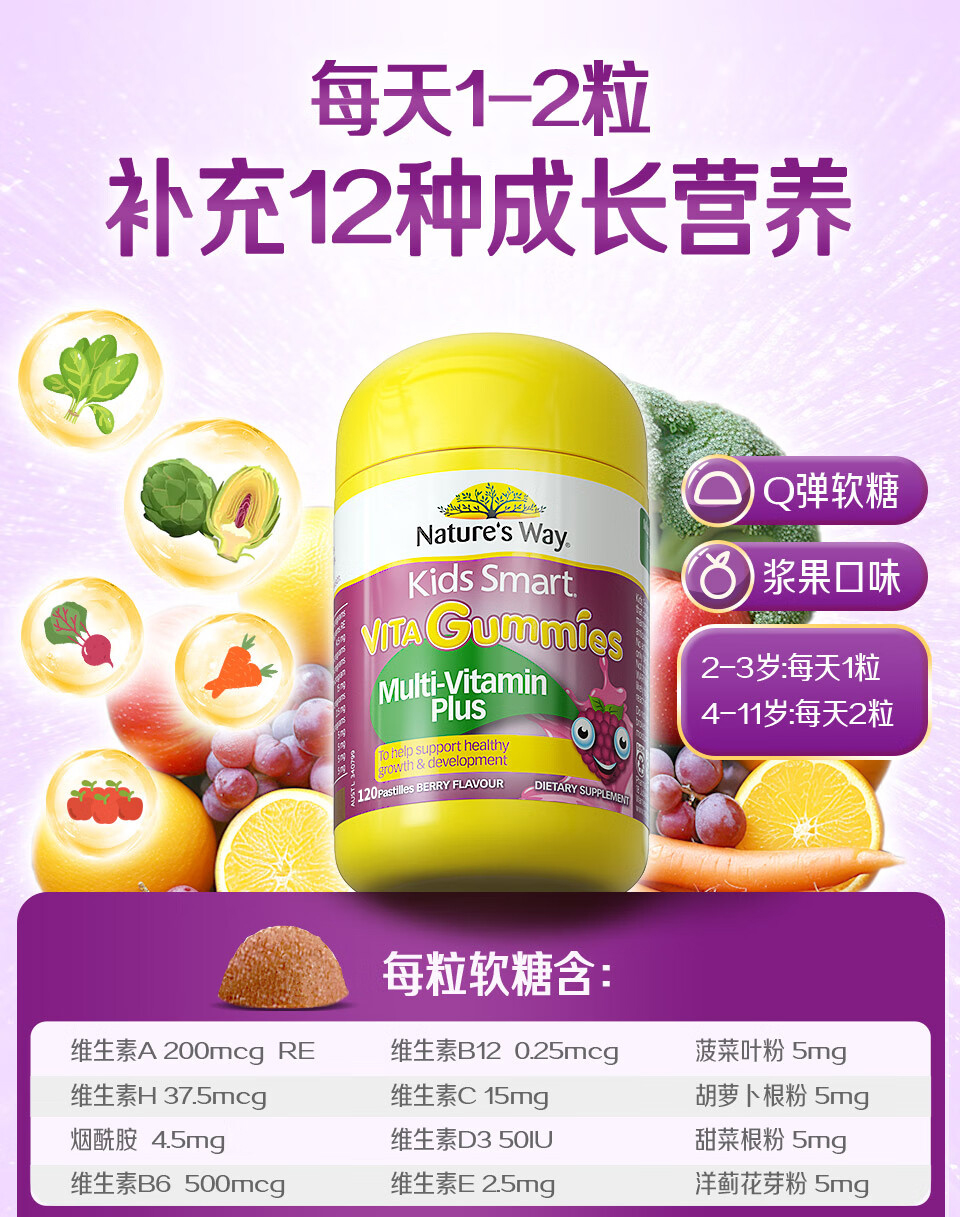 佳思敏(Nature's Way) 维生素c儿童VC 儿童复 合 维生素+蔬菜营养软糖 120粒/瓶
