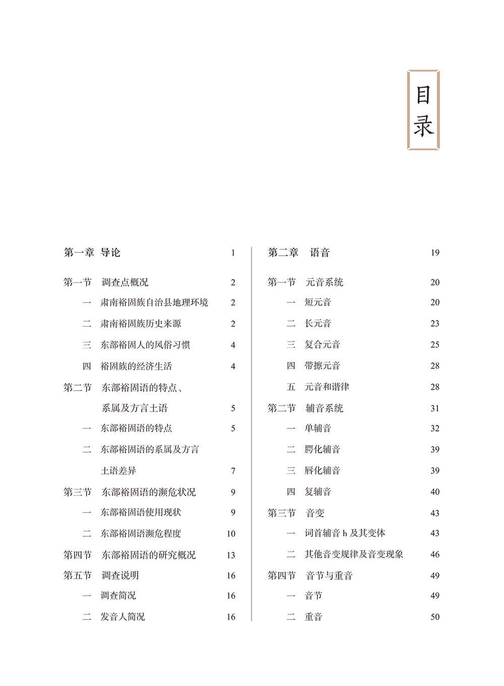 东部裕固语是蒙古语族语言中在语音语法词汇诸方面具有典型特点的一种濒危语言。该专著是严格按照语保的统一要求在田野调查的基础上完成的。共分导论、语音、词汇、分类词表、语法、语料等六章。语音方面描写了其全貌包括元音(包括长短复合)辅音及其变体、语音变化、元音和谐、音节结构、重音等。词汇(含词表)方面比较全面描写词汇特点、结构、来源以及独特的词语,包括图文并茂的文化词语等。语法方面分词类、短语和句法三节,不仅反映了蒙古语族语言共有的一般特点而且还反映了自身的不同特点。书稿不仅对该语言的保护和研究具有重要价值,而且对蒙古语族语言的研究以及对阿尔泰语言乃至汉藏等语言接触研究都具有一定的学术价值。