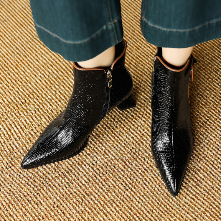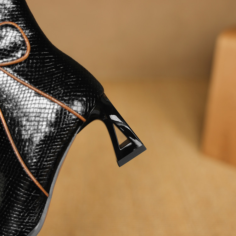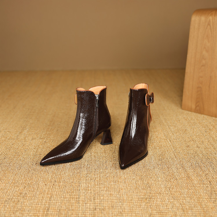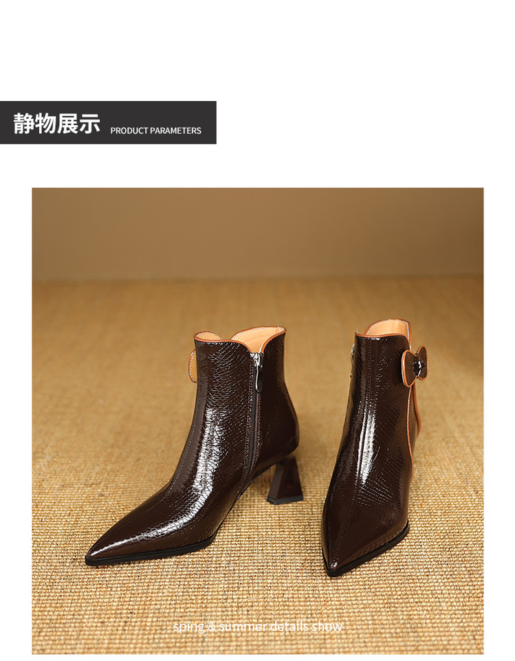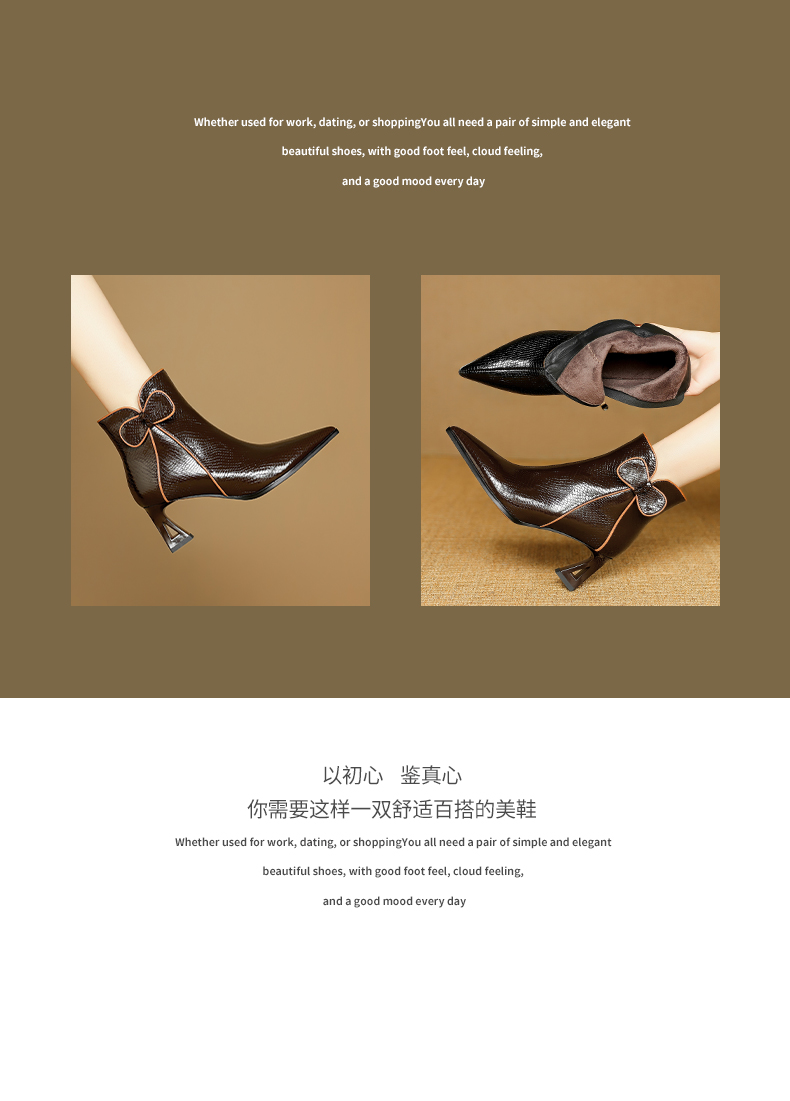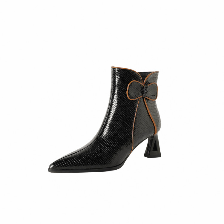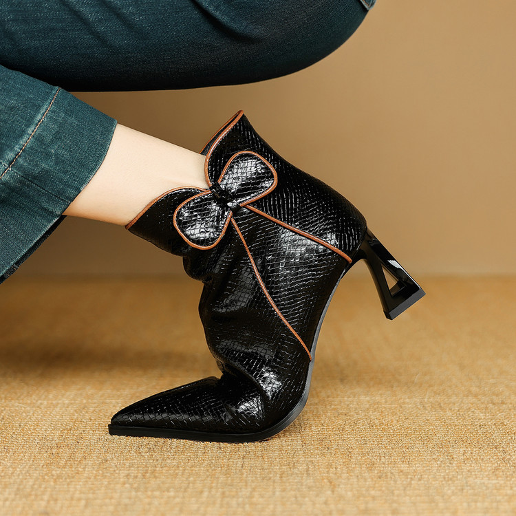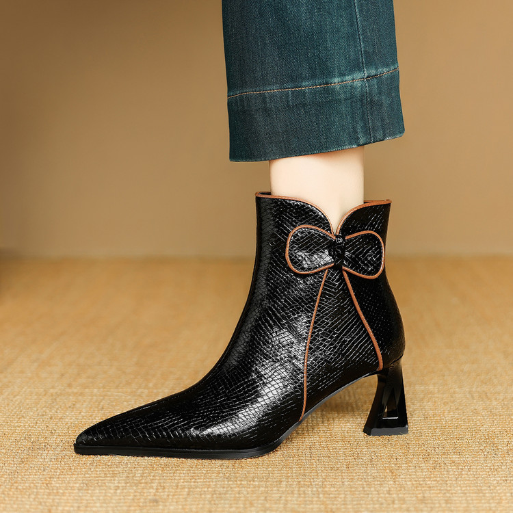 【预售5天】经典牛皮短靴女新款秋冬中跟单靴时尚蝴蝶结尖头洋气棕色皮靴DB&M6605