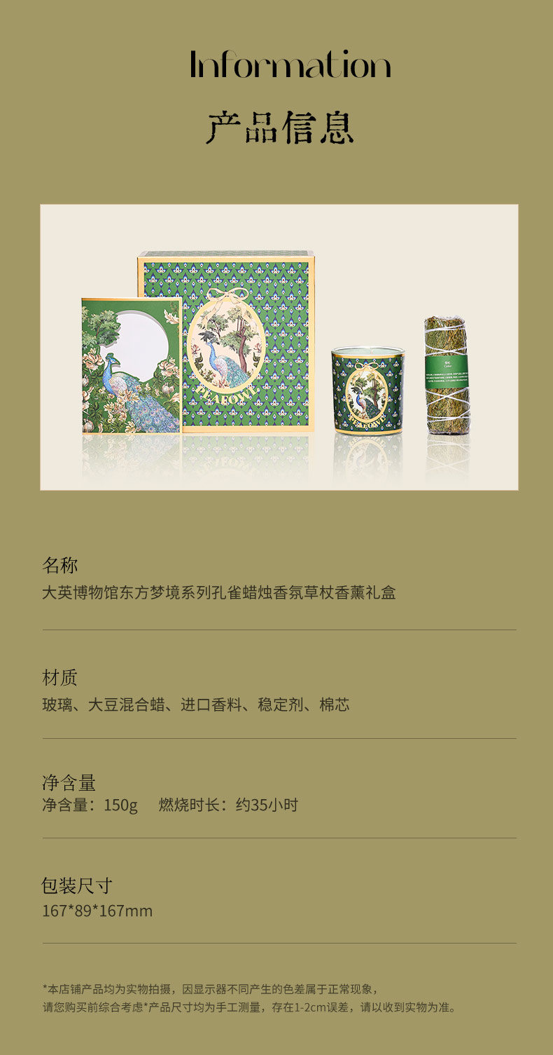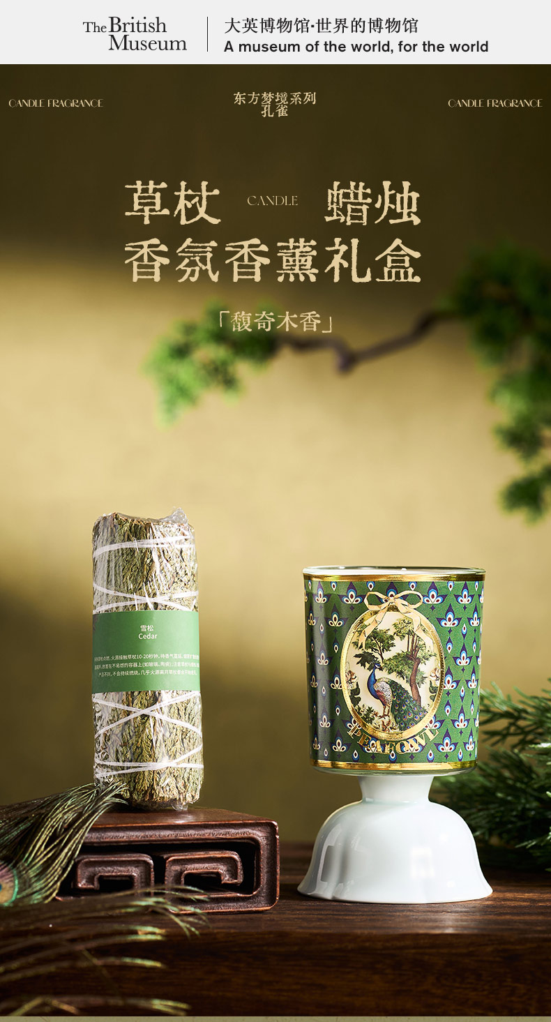 大英博物馆 东方梦境系列 孔雀蜡烛香氛草杖香薰礼盒