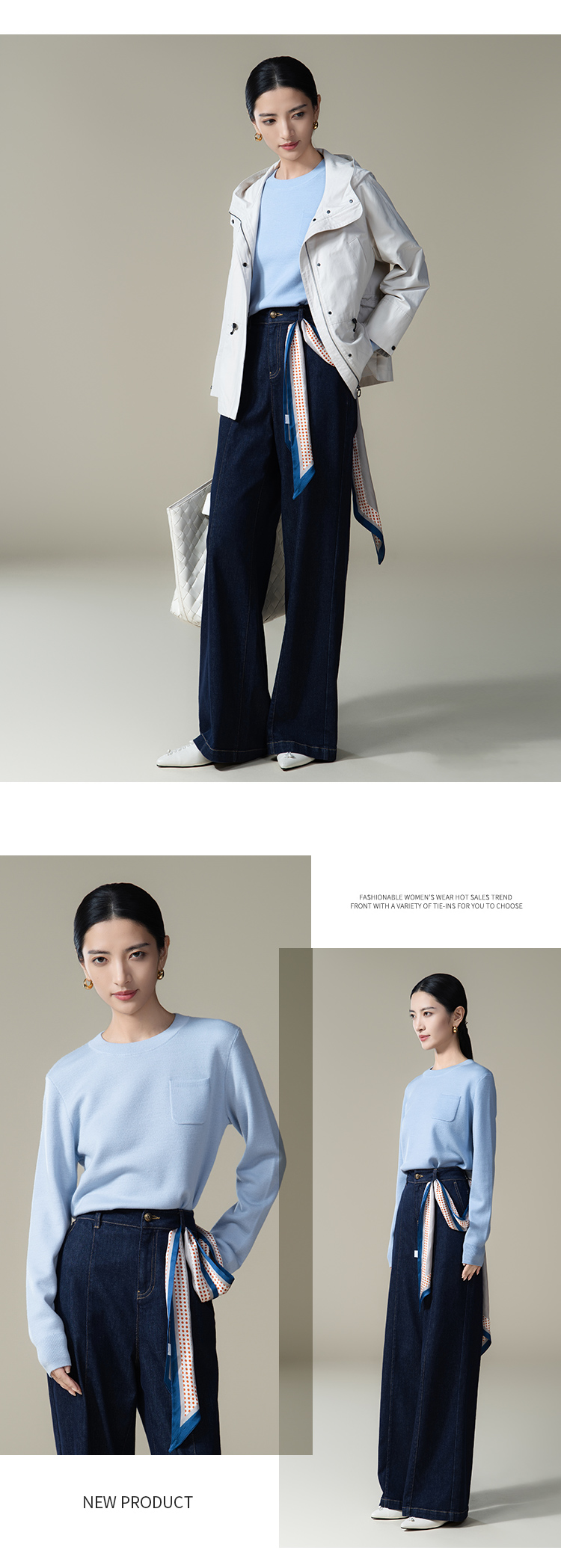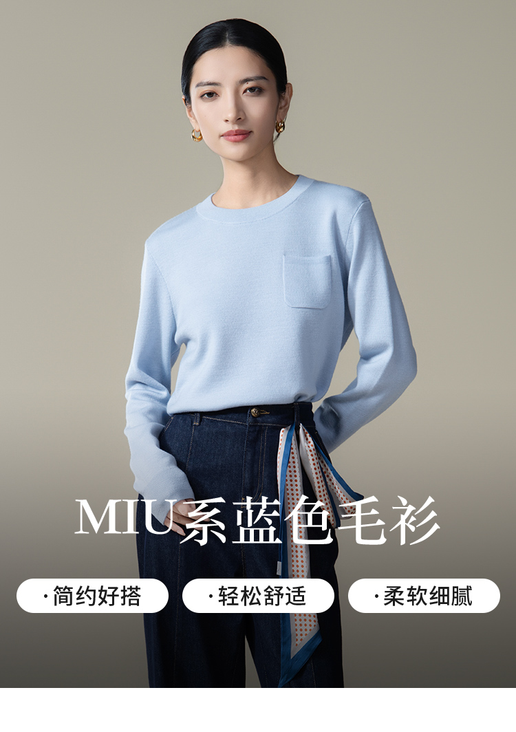 【商场同款】CNK5914 “ 轻蓝毛衫 ” 清浅的王冠蓝 平和又不失灵动 松身廓形,轻松舒适