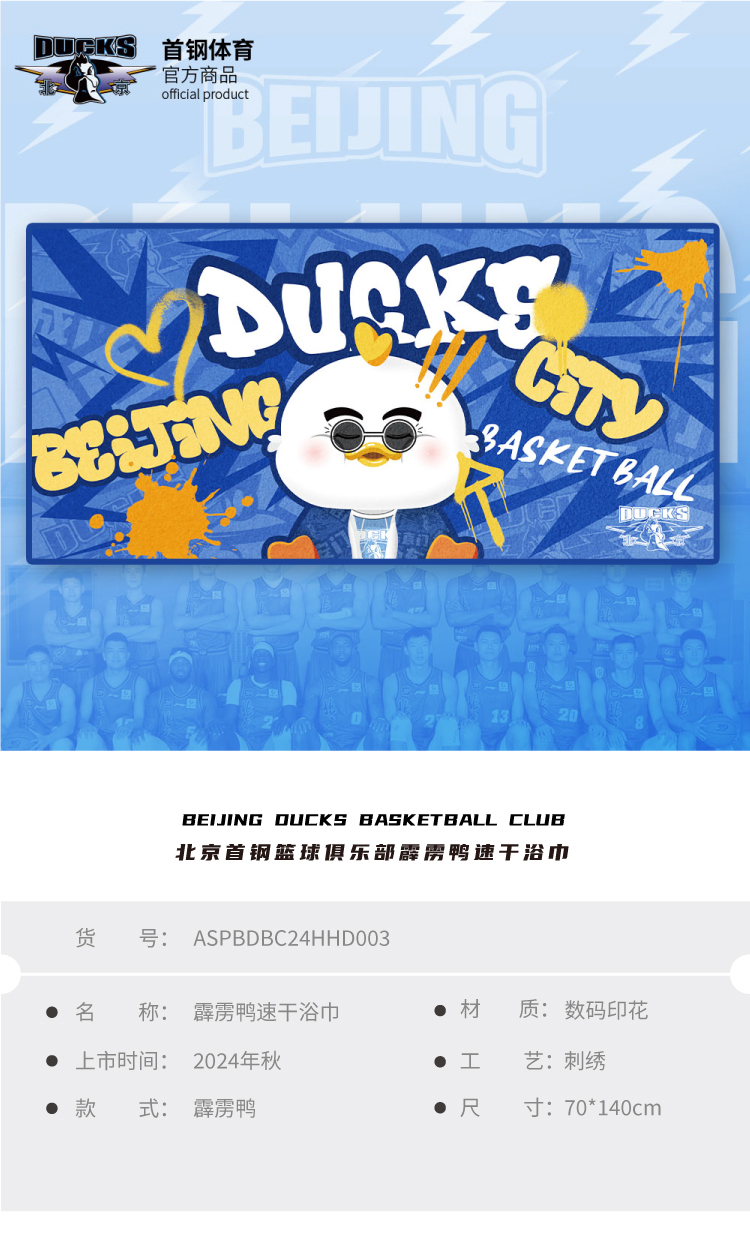 【官方正版】北京首钢篮球俱乐部 | 蓝色霹雳鸭浴巾吸湿速干球迷周边