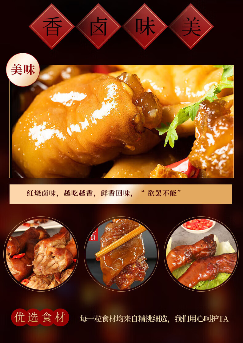 D老北京红焖羊蹄,4袋组合,采用内蒙古草原羔羊蹄,多味香辛料,原汁老卤,筋肉相连,入口鲜美不腻,香而不膻,越吃越香D