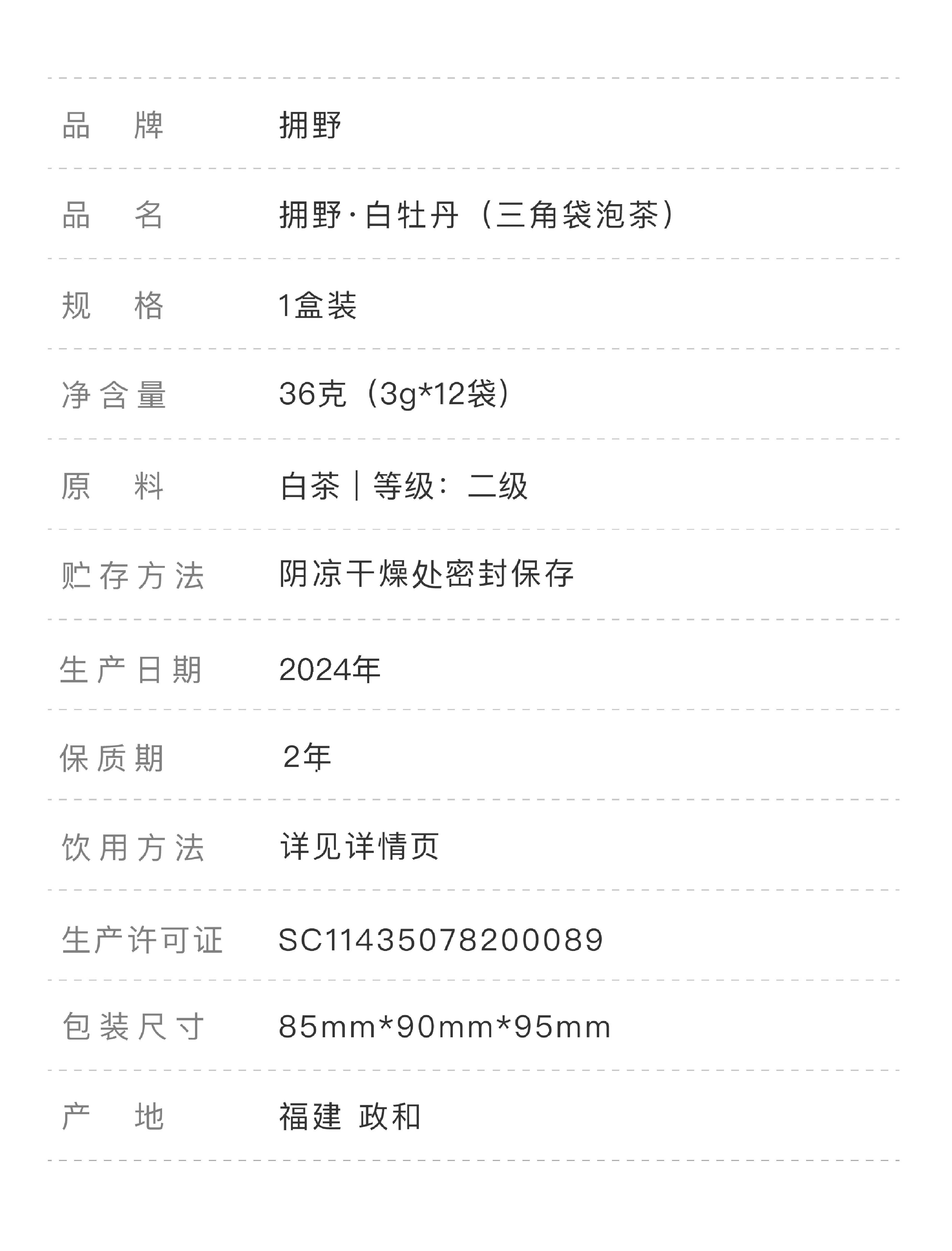 拥野·白牡丹 三角袋泡茶 3gx12袋/盒