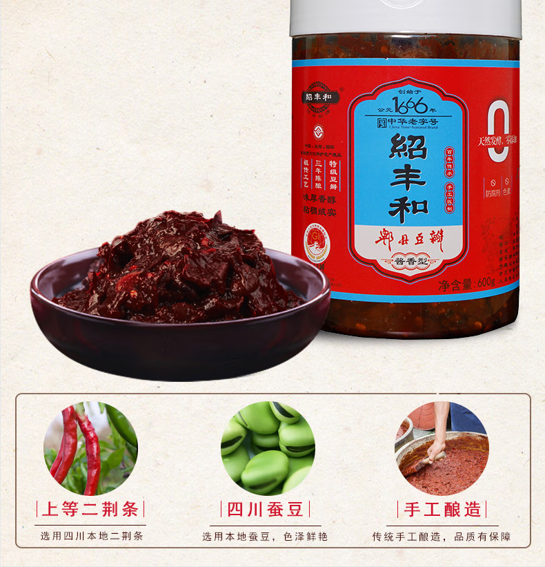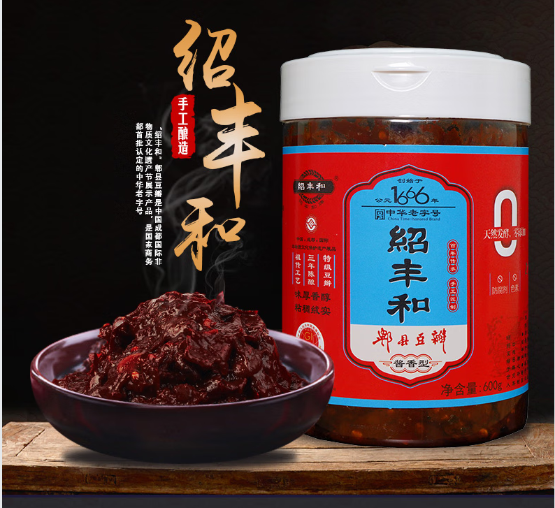 绍丰和绍丰和零添加特级郫县豆瓣酱236g/600g三年陈正宗四川纯手工家用