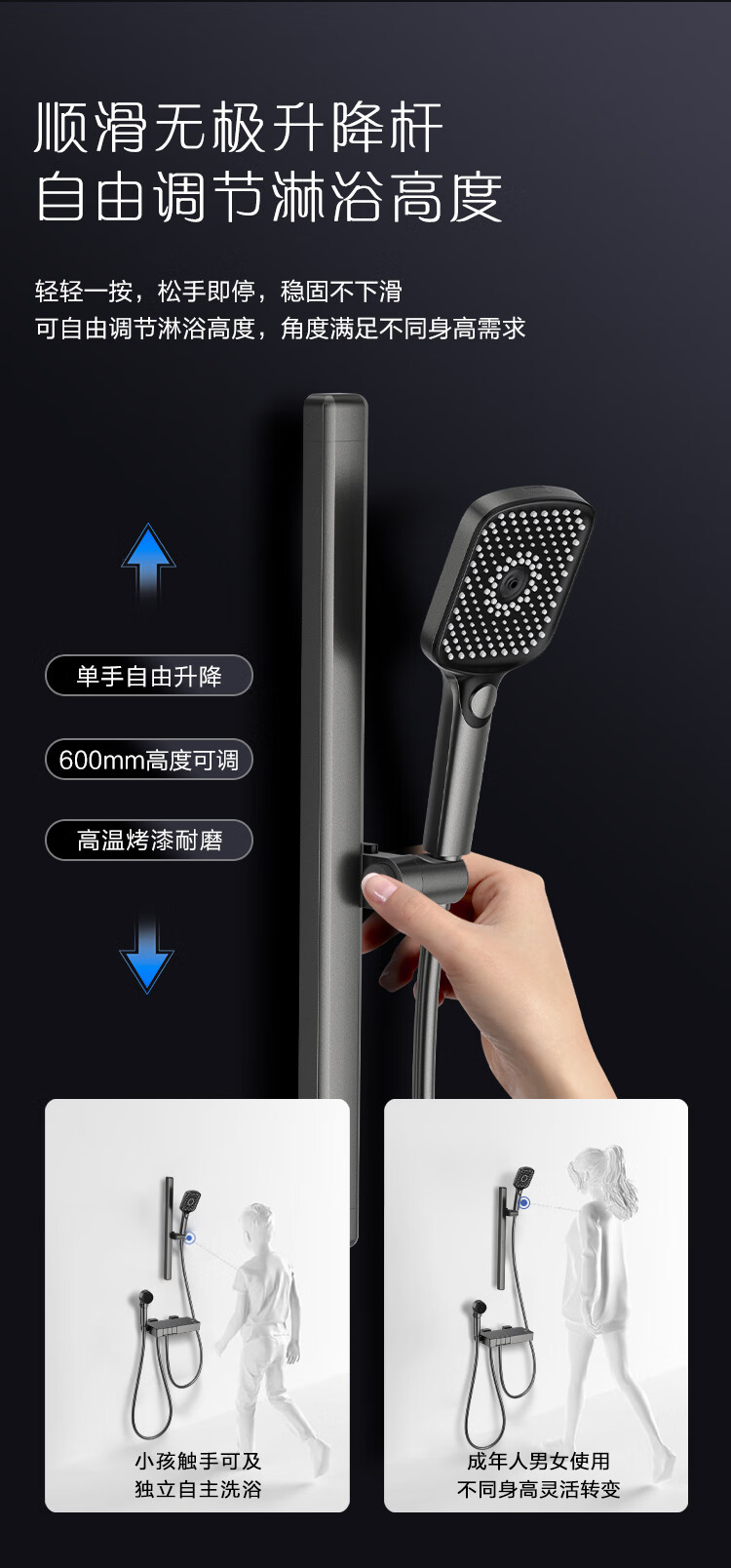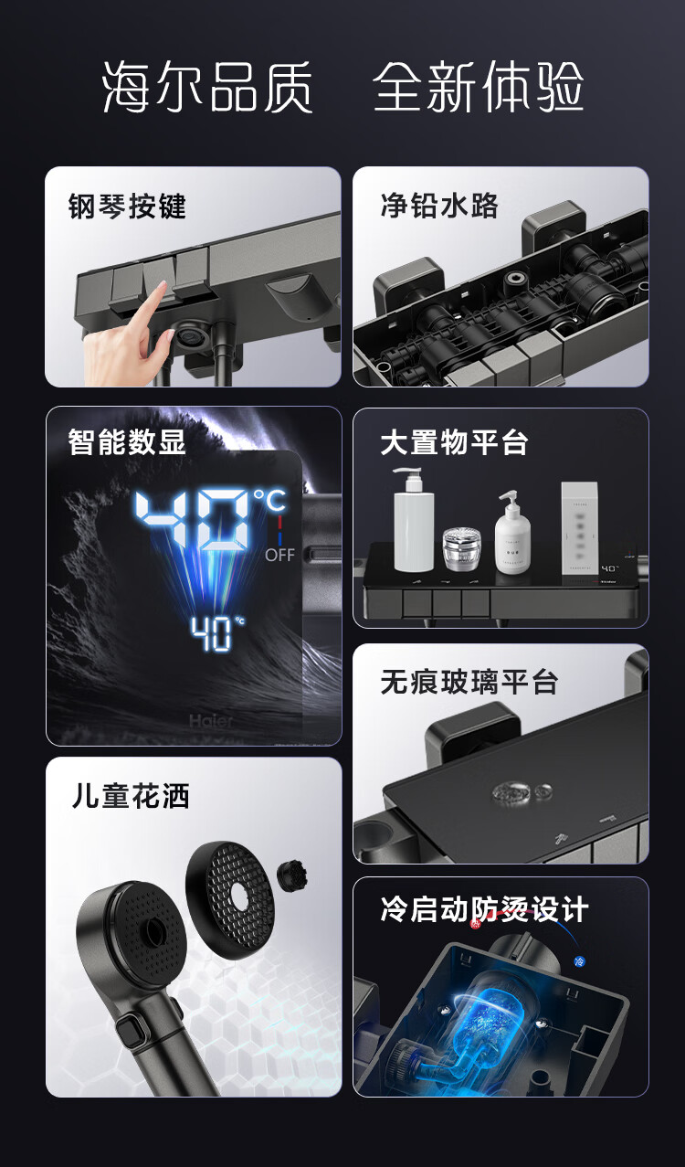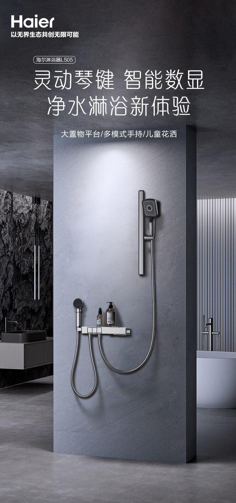 海尔(Haier)淋浴花洒套装多出水大置物平台钢琴按键防烫家用淋浴器 【智能数显+儿童花洒】奶白L505 /枪灰L505 海尔售后免费安装