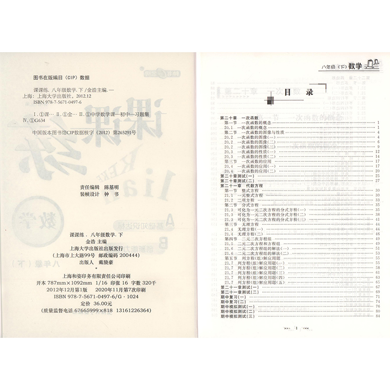 钟书金牌课课练 数学 8年级下册/八年级第二学期 新课标全新修订版 上海初中初二教材教辅课后同步配套练习期中期末单元测试训练