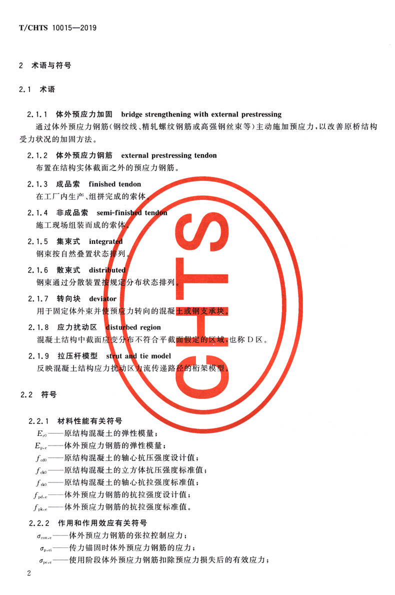 公路混凝土桥梁体外预应力加固技术指南(T/CHTS 10015—2019)