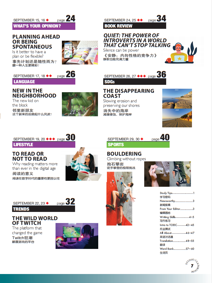 全年12期杂志每月快递邮寄,物流单号可查。每篇文章均有朗读和讲解音频,畅听650分钟外教精讲!