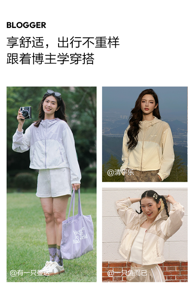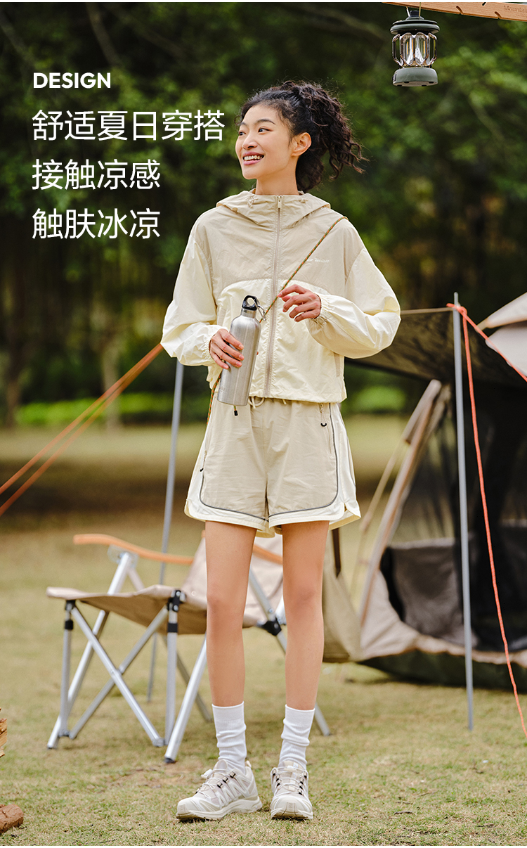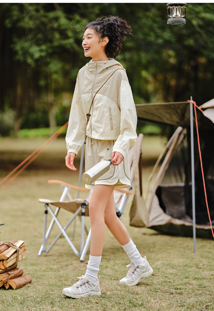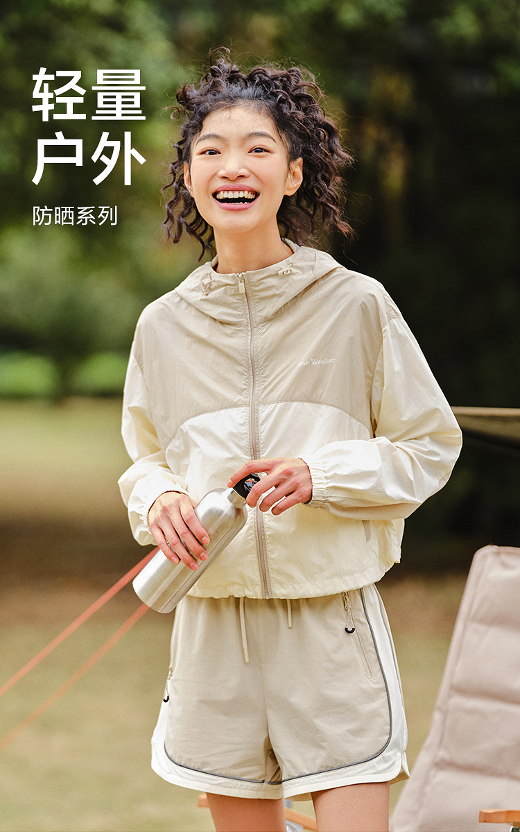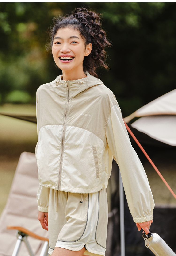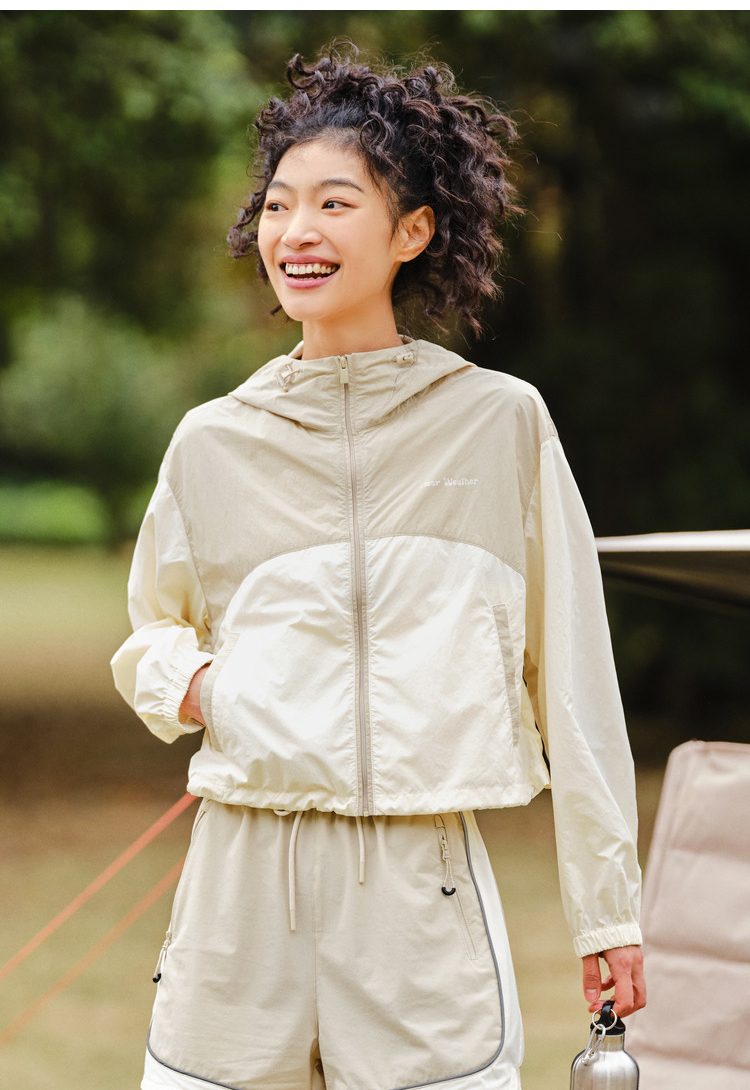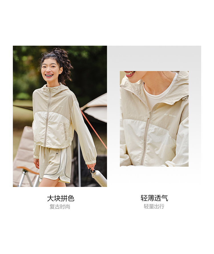 森马外套女短款连帽凉感防晒衣宽松夏季新款质感拼色夹克复古