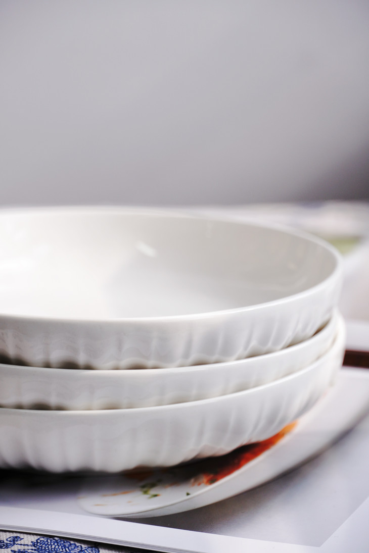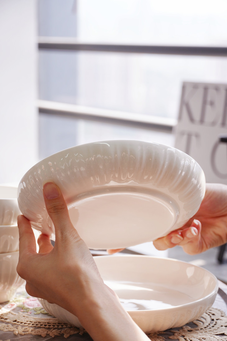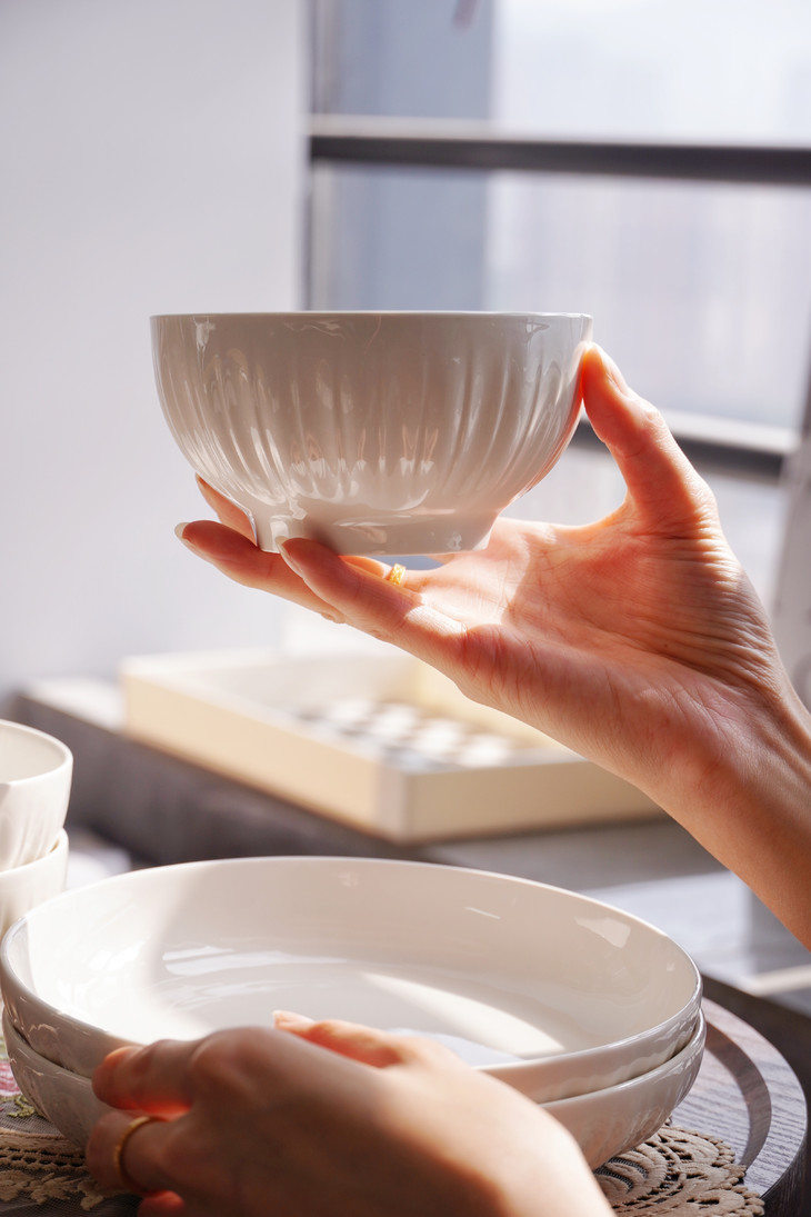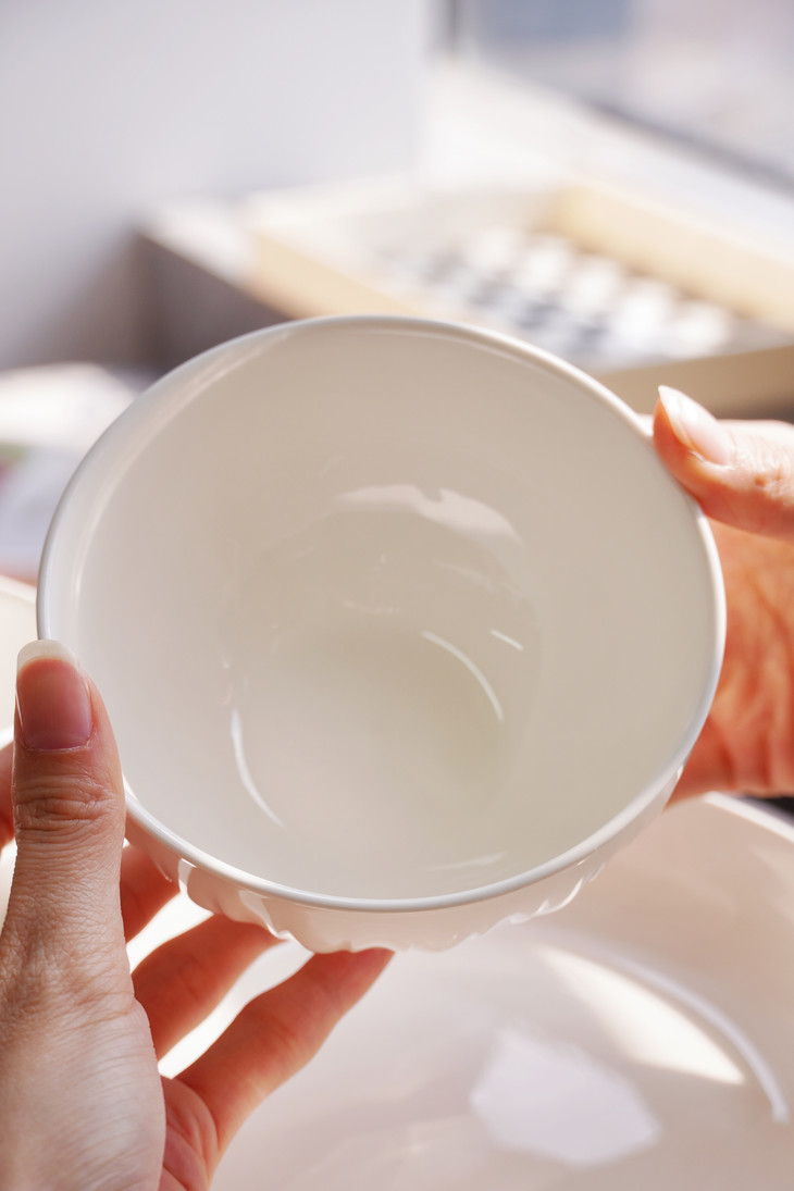 一只好的白色餐具,可以看出莹润光泽度、釉色饱满度✔ 可以摸出瓷质的厚薄均匀、质量与纹理的平衡✔ 这批金盏花餐具在原料选材上用的是等级高、白净值更高的上等高岭土🔺 质地细腻、颗粒均匀、杂质少🔺 无论是观感还是触感都优质得很直观