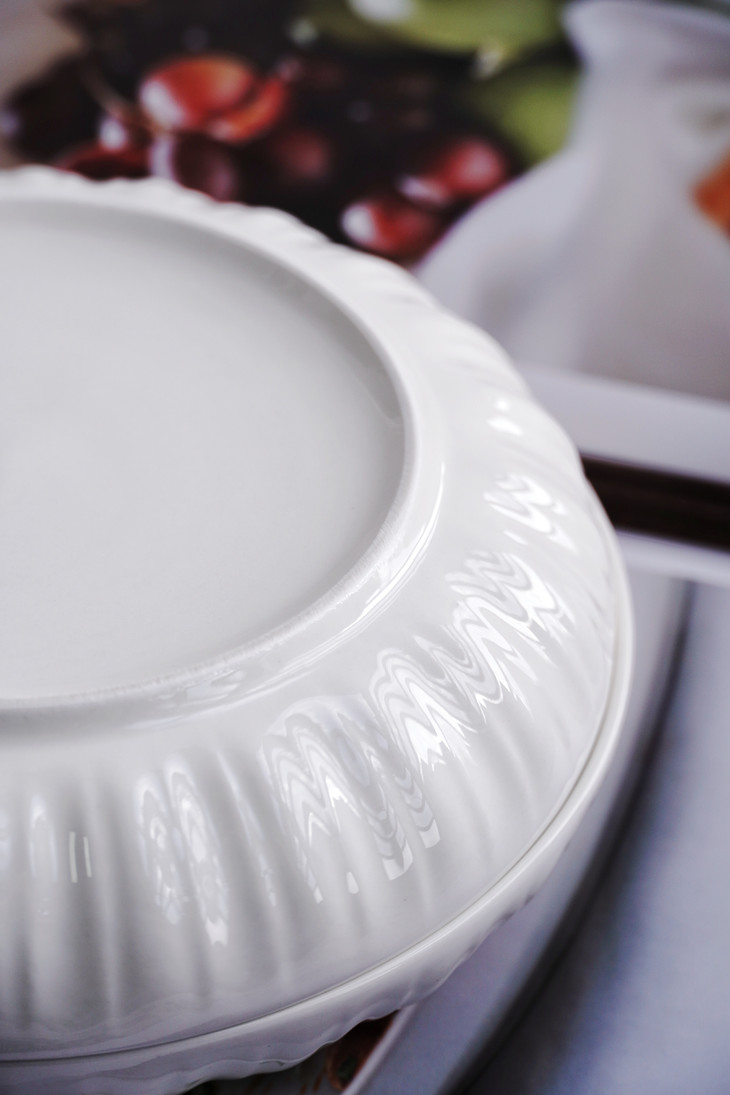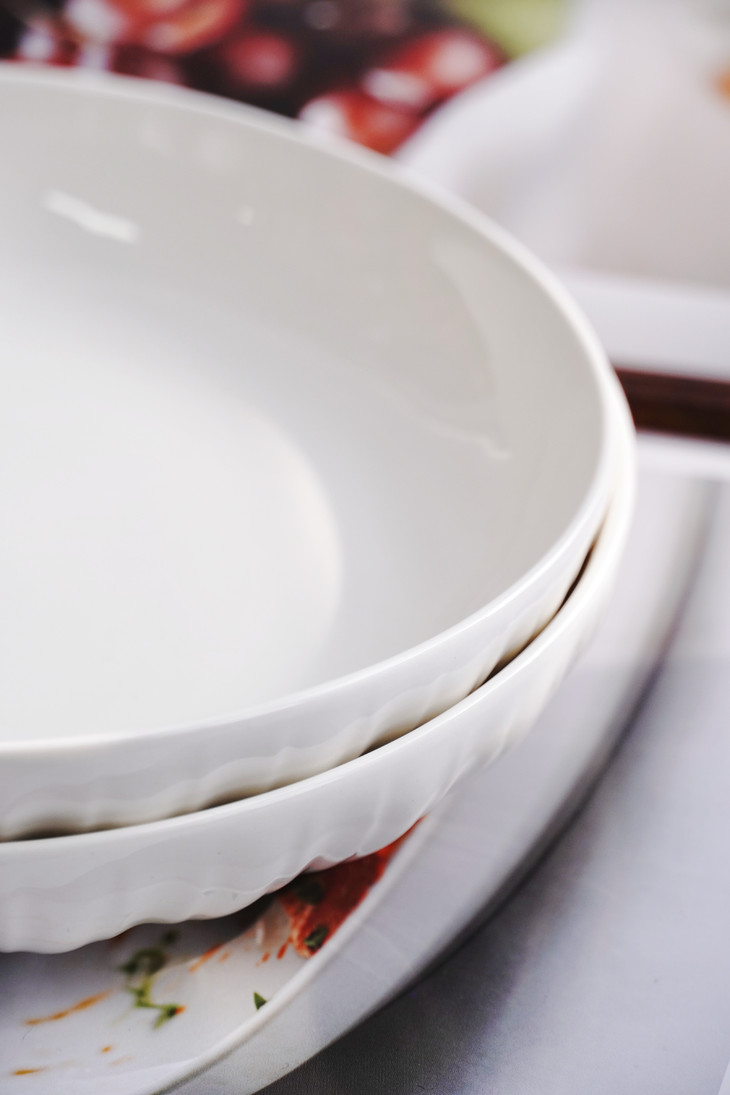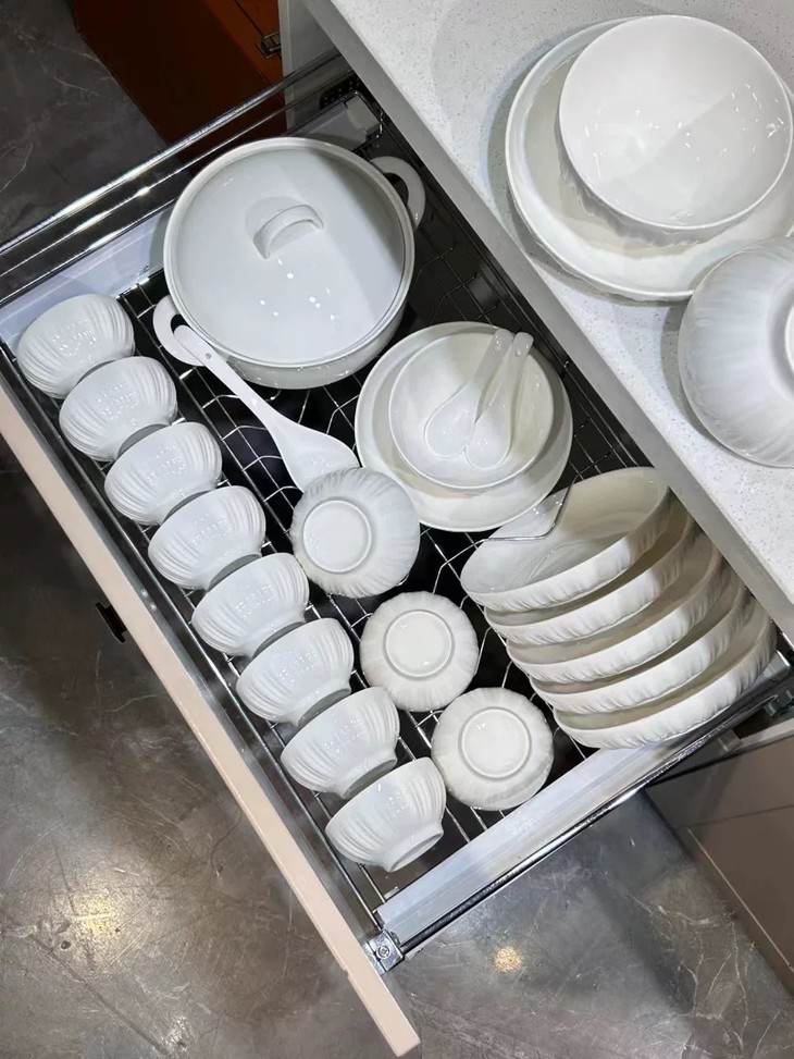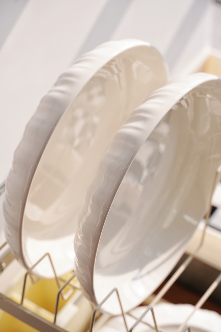 一只好的白色餐具,可以看出莹润光泽度、釉色饱满度✔ 可以摸出瓷质的厚薄均匀、质量与纹理的平衡✔ 这批金盏花餐具在原料选材上用的是等级高、白净值更高的上等高岭土🔺 质地细腻、颗粒均匀、杂质少🔺 无论是观感还是触感都优质得很直观