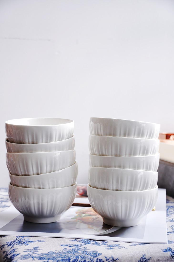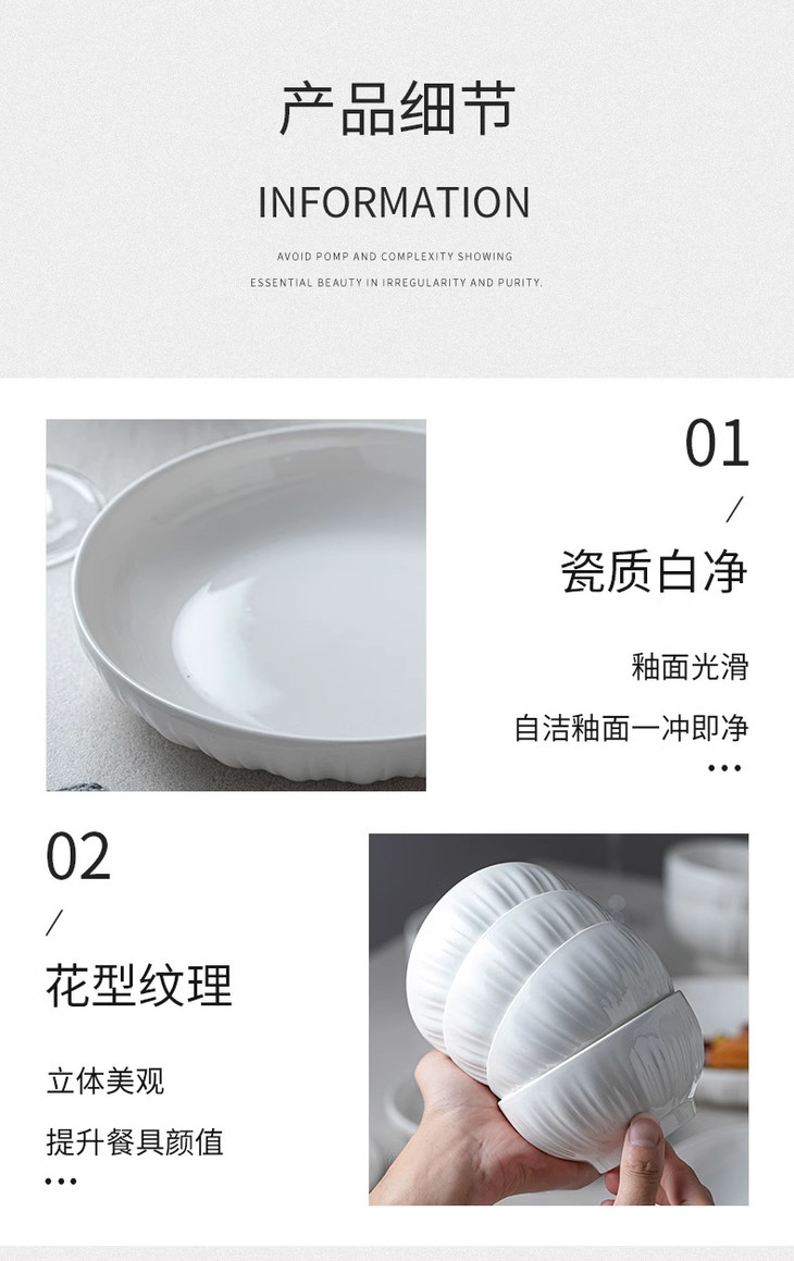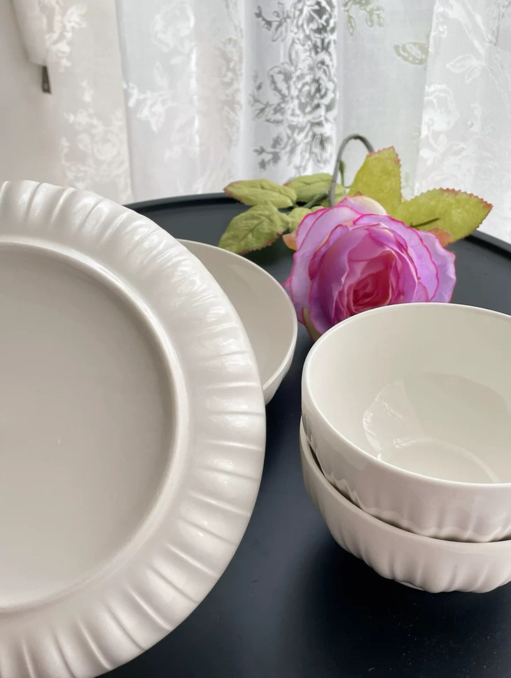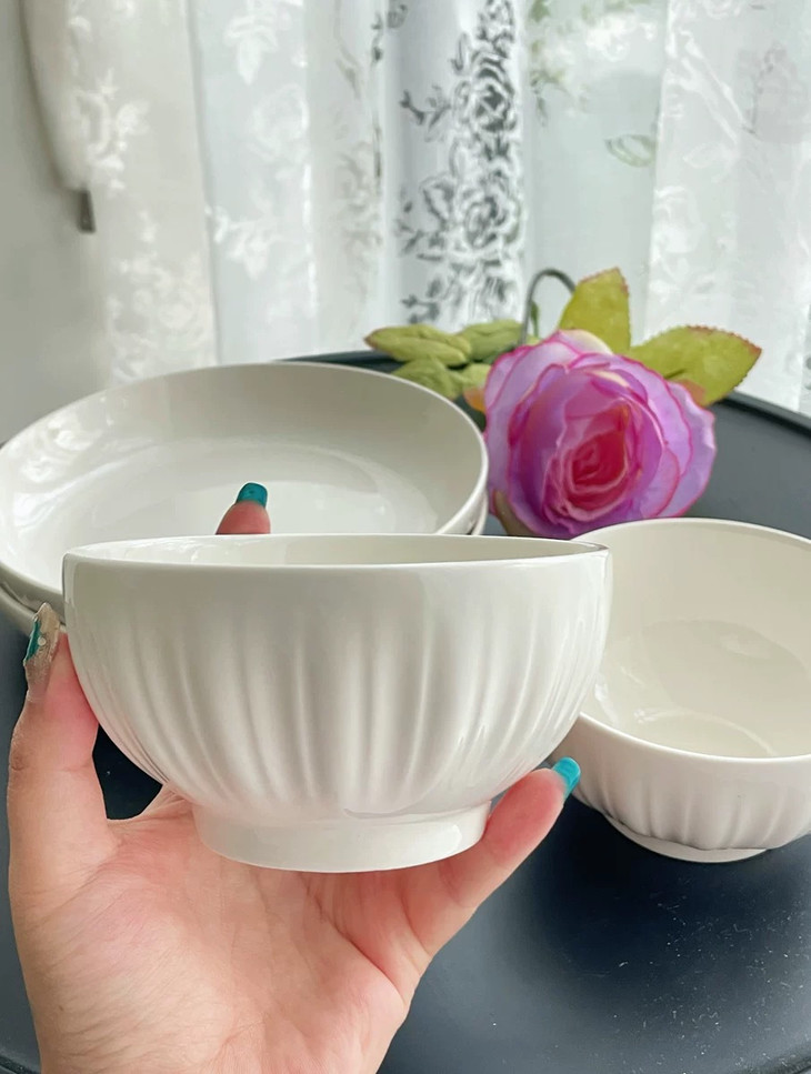 👉🏻十只4.5英寸餐碗 11cm*5.7cm 容量≈300ml 👉🏻六只7英寸菜盘 18.8cm*3.4cm 适合囤货! 无论家里人多人少,餐具这种东西都是磨损消耗品 且作为过日子必须品 多囤几只几套都合理 莹白色的瓷具耐看 厚实瓷质耐用耐磨损 即使纯白没有彩绘 高级的花型浮雕纹理也极具美学质感 从小餐具上享受生活的精致🍽