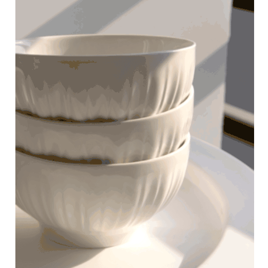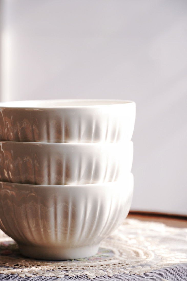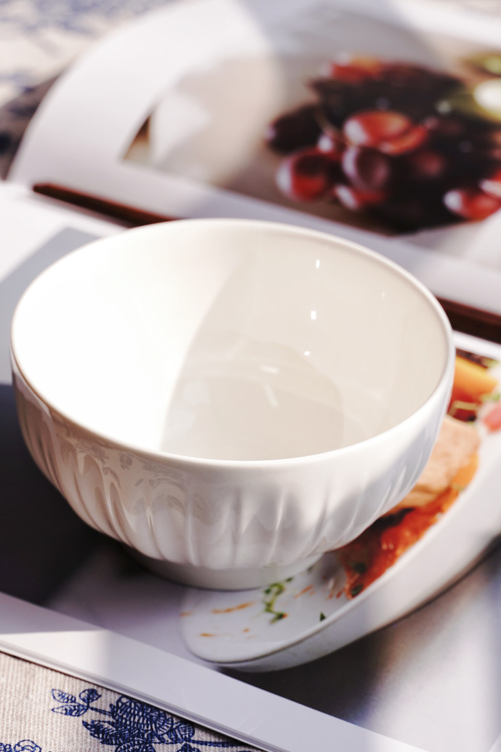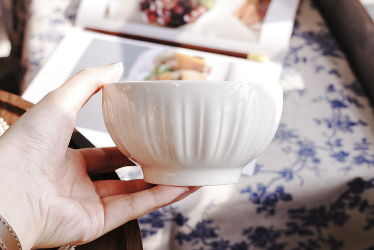 很少用过浮雕设计的碗 这只餐碗握在手里的手感合称且防滑 原以为会不好洗涤藏污纳垢 但釉面质感好就很容易清洗 一冲即净不藏油 而且高温瓷可以随意送入洗碗机消毒柜等高温工作环境使用 从各个角度来说都非常合我心意