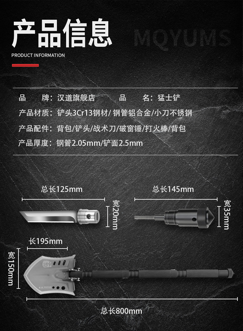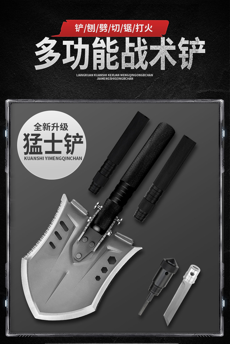汉道【猛士工兵铲】多功能工兵铲折叠铲车载铁锹挖土兵工铲锰钢