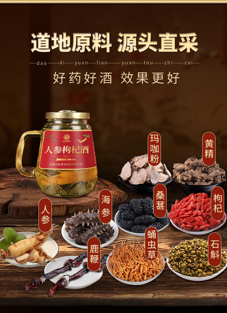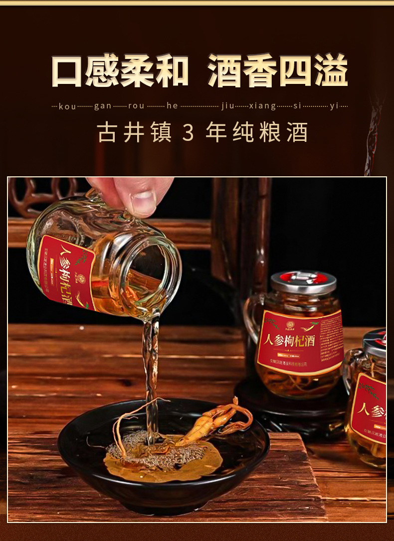 【清香入口!人参酒小瓶 】原料三鞭蛹虫草鹿鞭酒 枸杞黄精鹿茸血礼盒装白酒健康