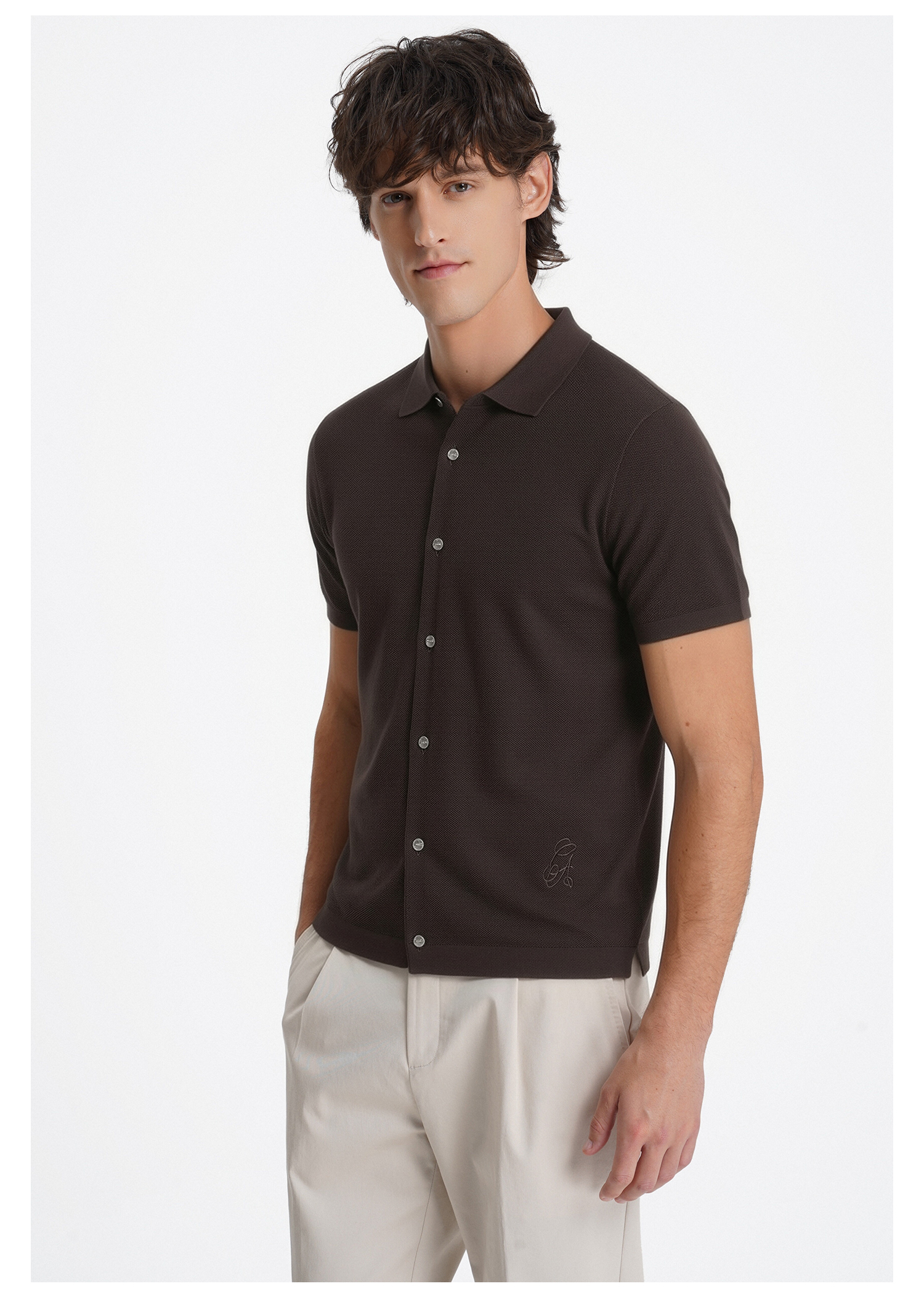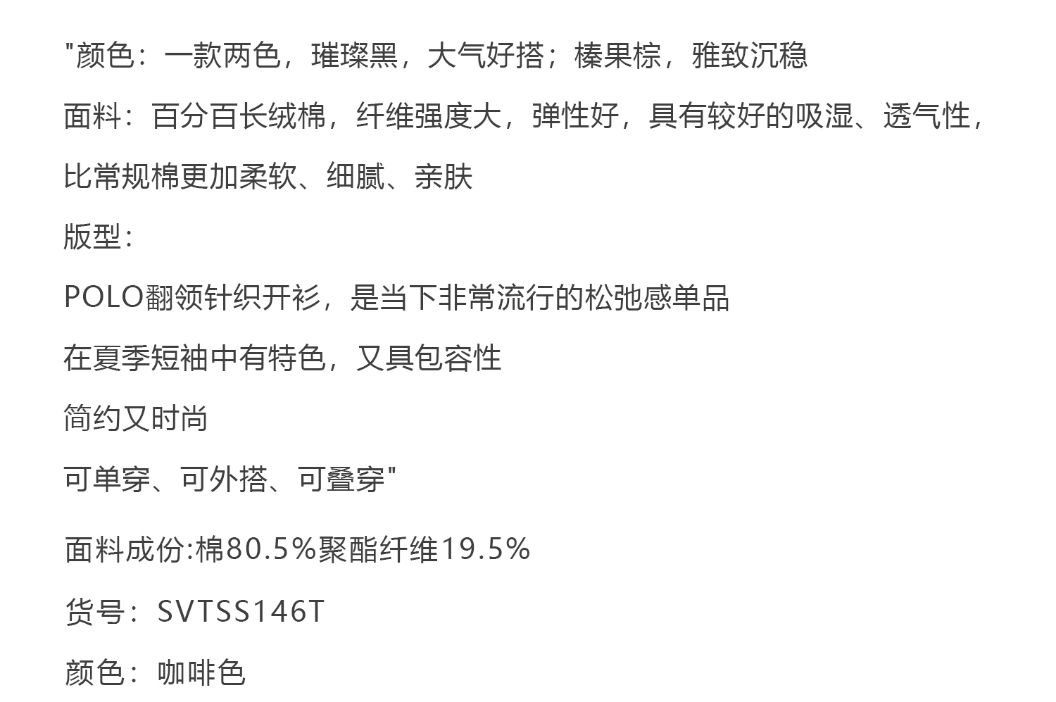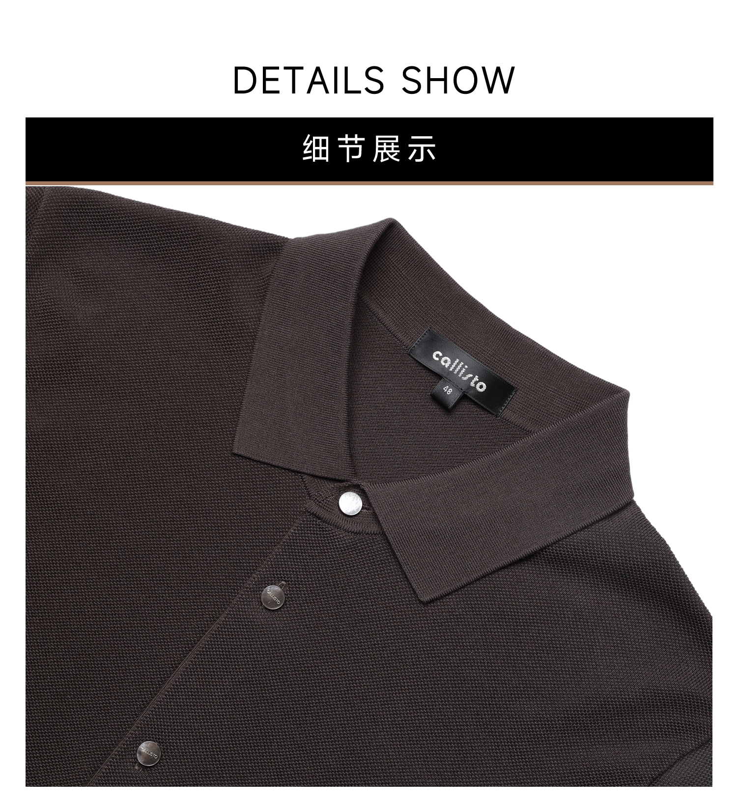 callisto榛果棕百分百长绒棉POLO翻领针织开衫