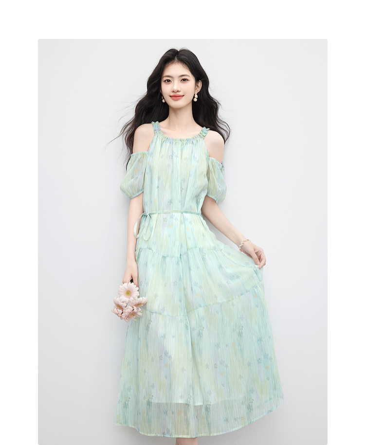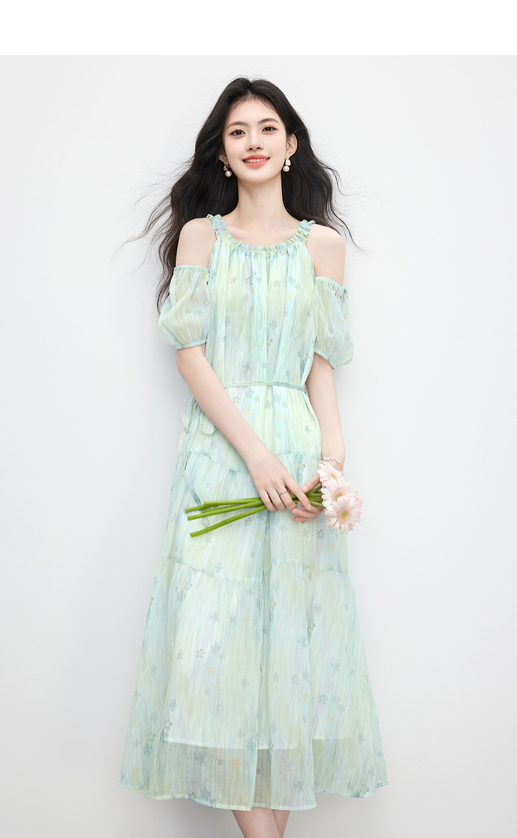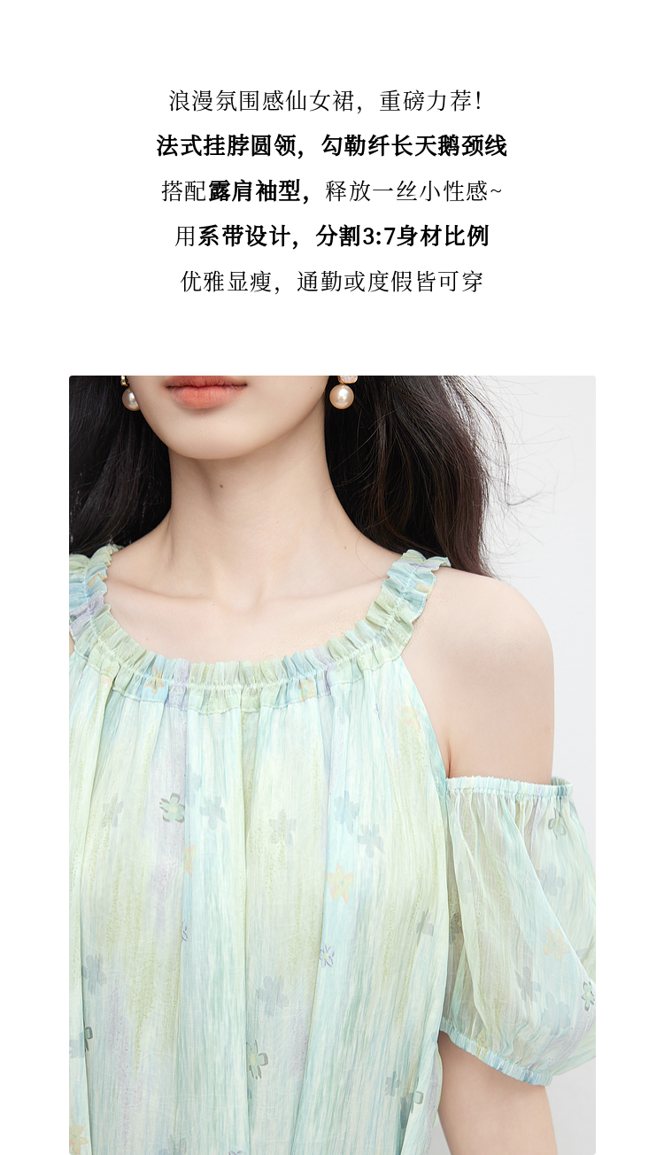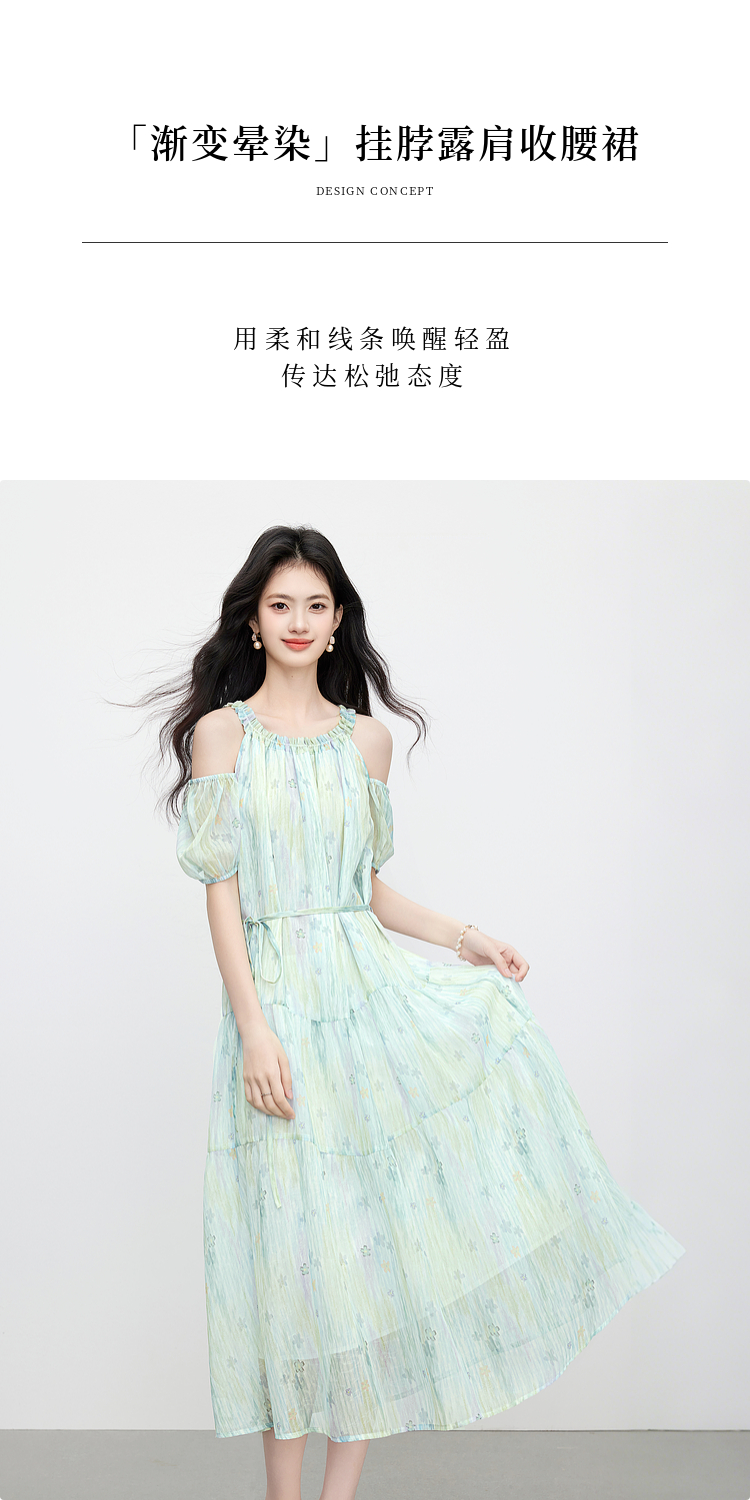 【专属特价】熙世界渐变晕染露肩挂脖连衣裙女夏季新款法式海边度假风漂亮长裙
