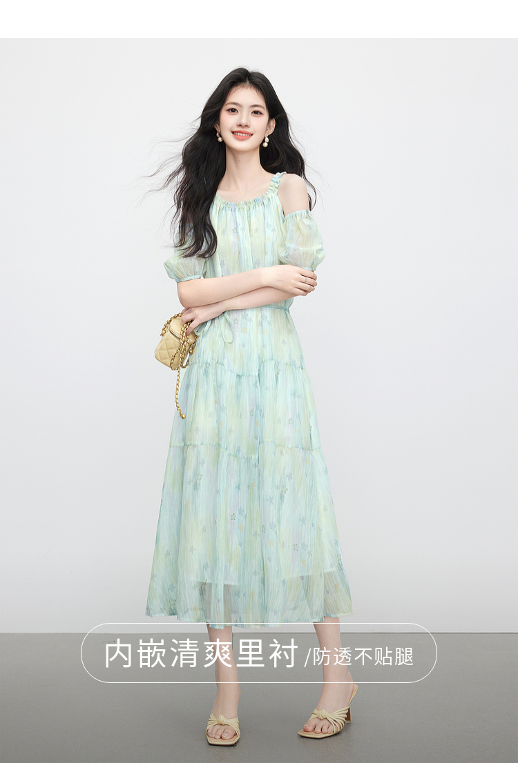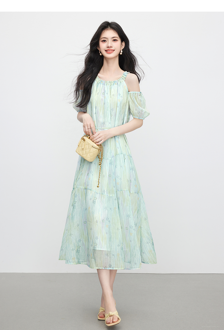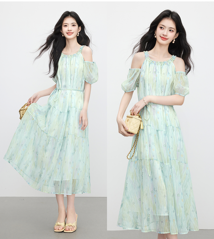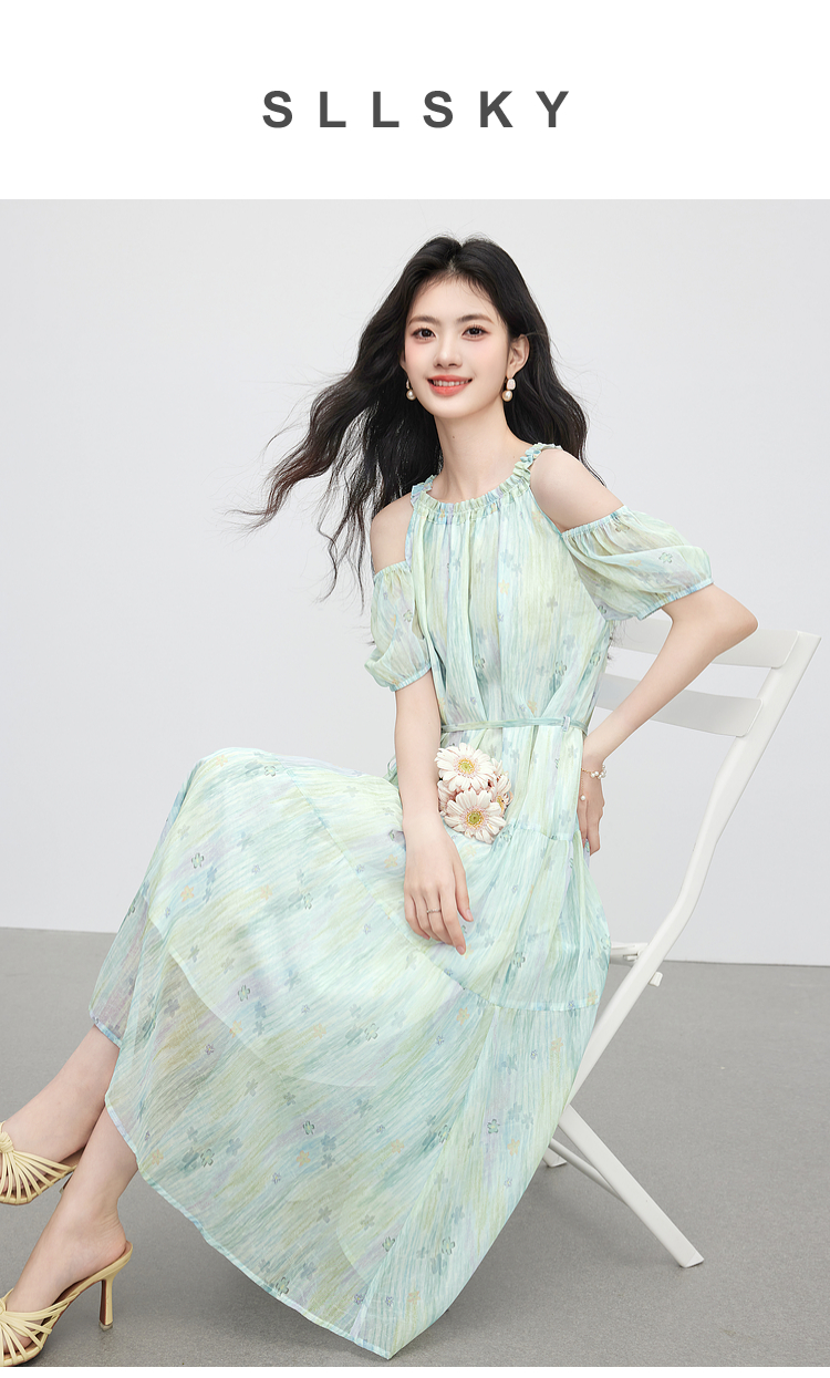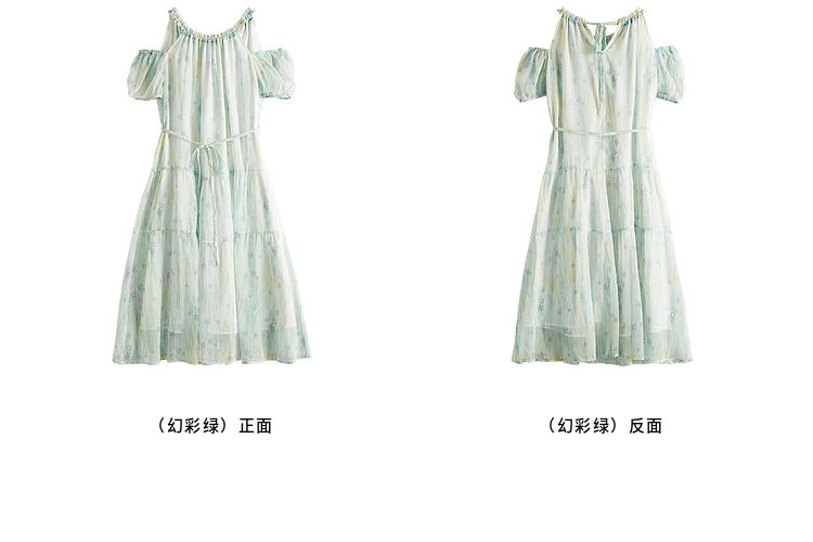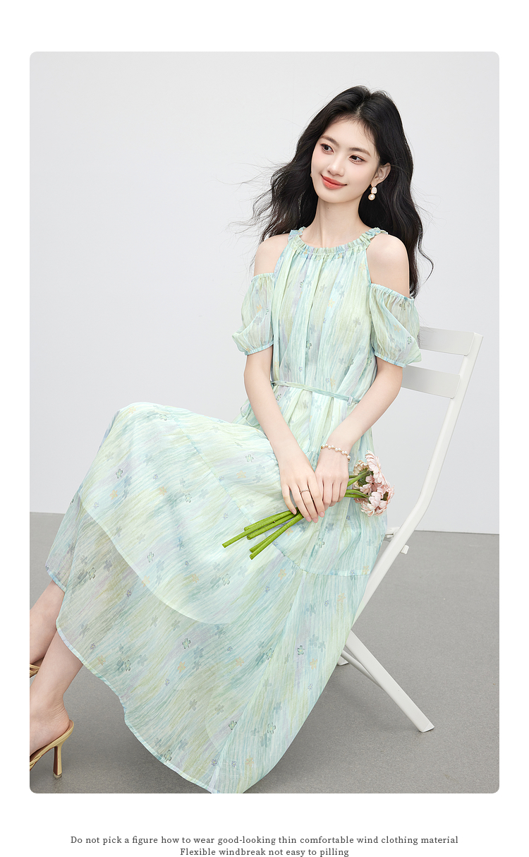 【专属特价】熙世界渐变晕染露肩挂脖连衣裙女夏季新款法式海边度假风漂亮长裙
