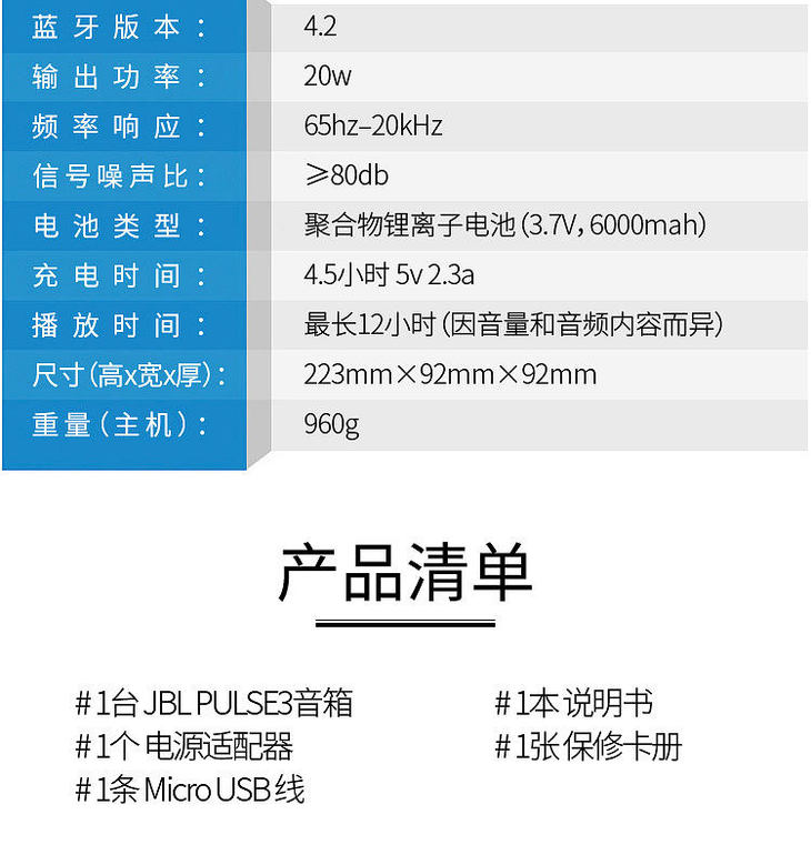 JBL PULSE3 音乐脉动 防水便携式蓝牙音响