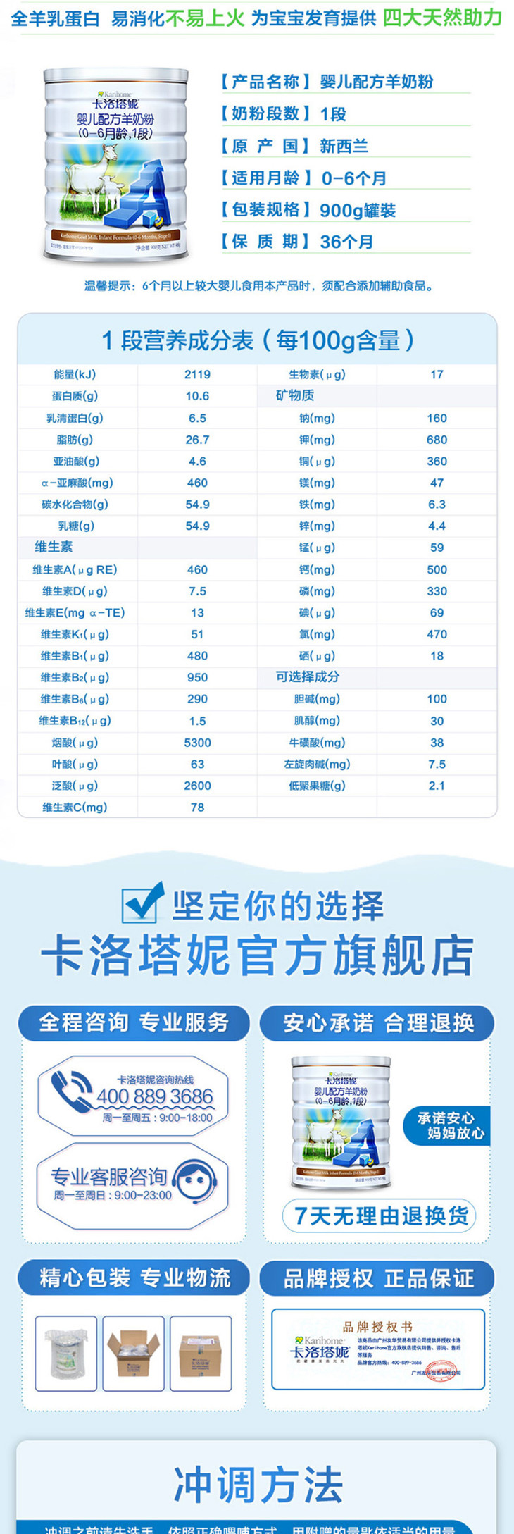 【买三送一】卡洛塔妮羊奶粉1段900g