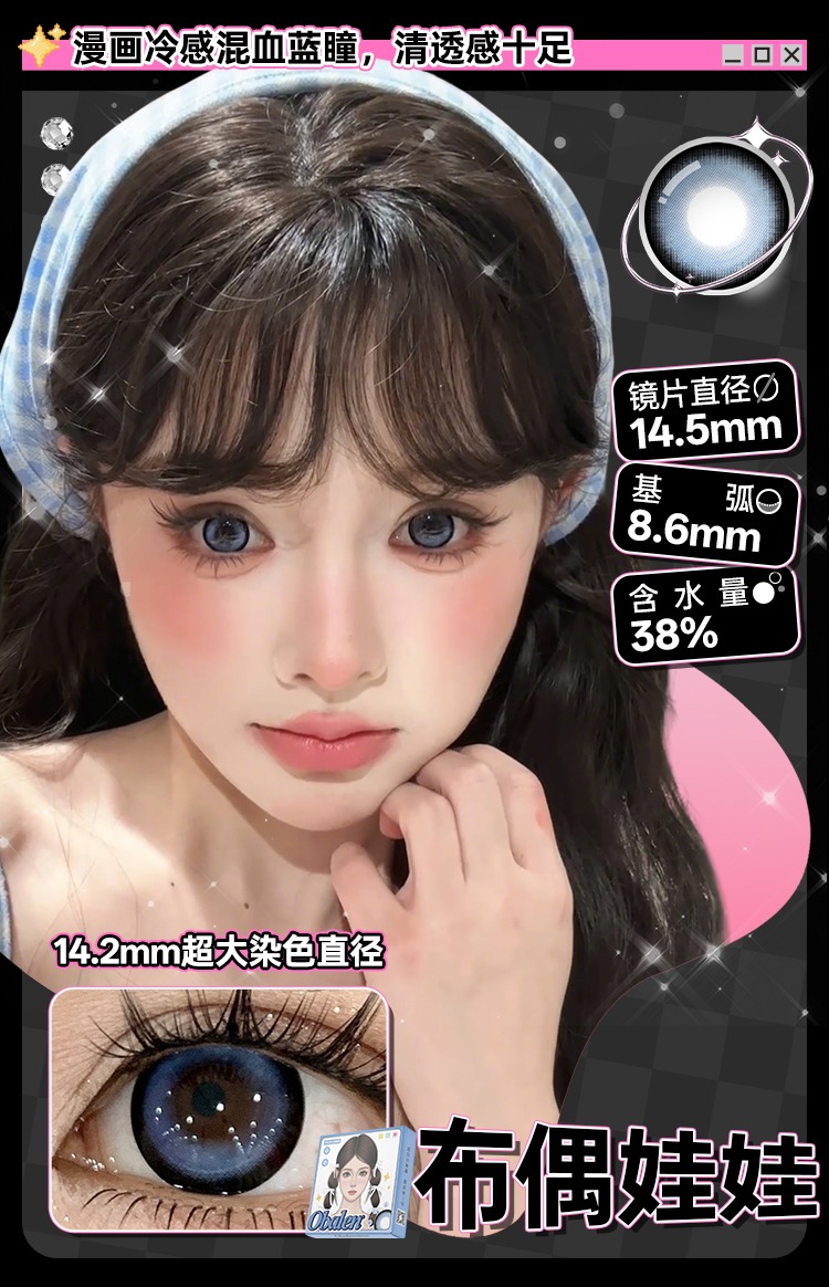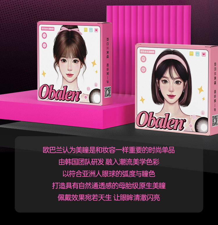 新品【超大地雷】方盒系列Obalen欧巴兰漫画大眼洋娃娃水润无感扩瞳半年抛美瞳非离子隐形眼镜2片装