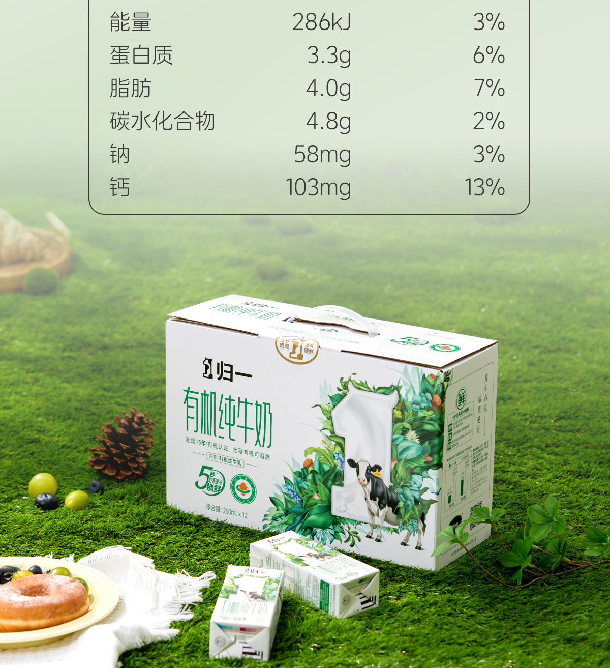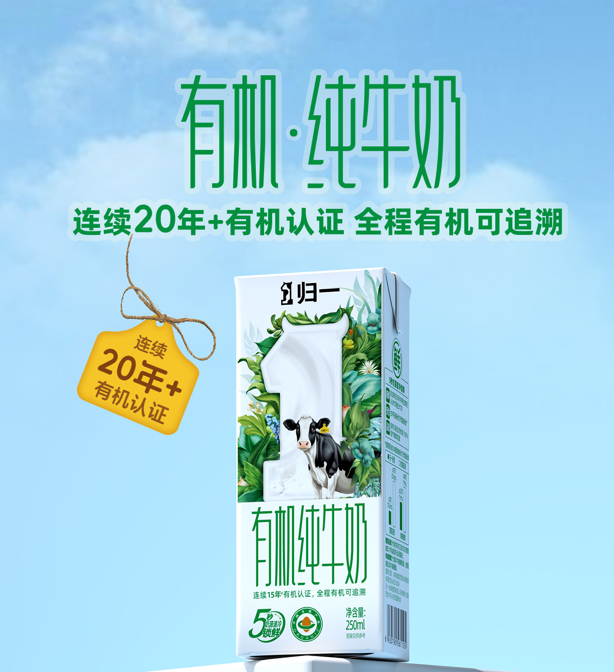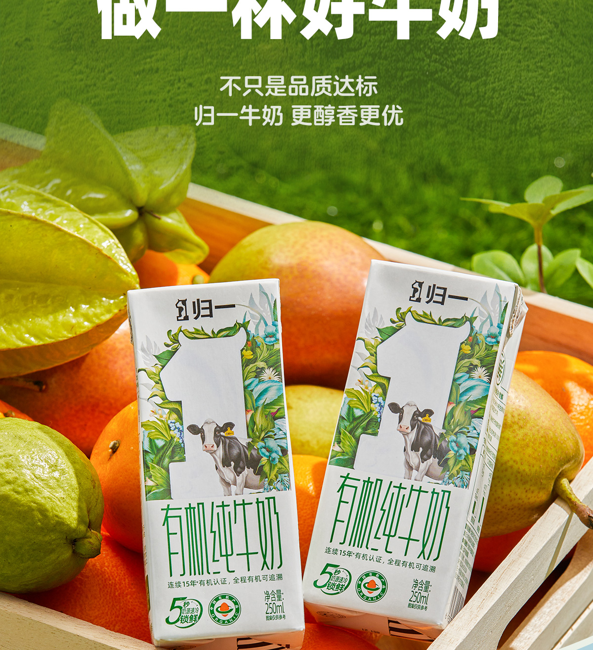归一有机纯牛奶250mL*12盒*2箱全脂灭菌100%生牛乳礼盒整箱装