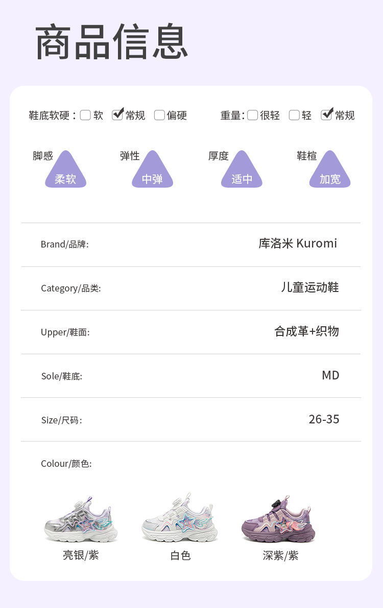 hellokitty童鞋春秋库洛米儿童运动鞋26-35码 KU5536907
